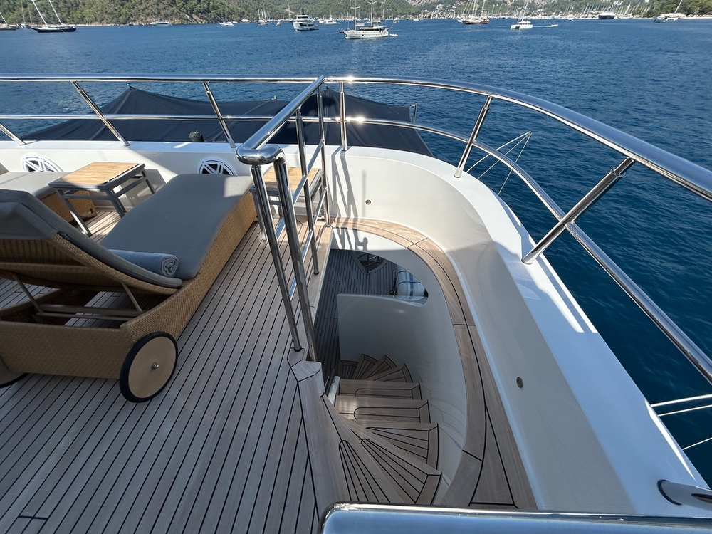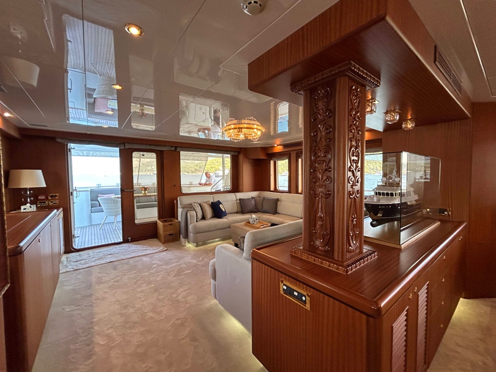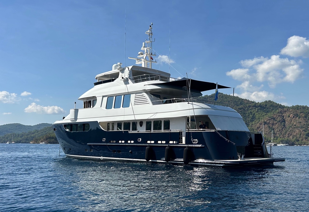 Built in 2011, the Bandido 90 represents the best of German engineering blended with timeless explorer-yacht design. With her robust steel hull and aluminium superstructure, she offers the stability, safety, and seagoing confidence expected of a true long-range motor yacht — while delivering the comfort and refinement of a contemporary superyacht.