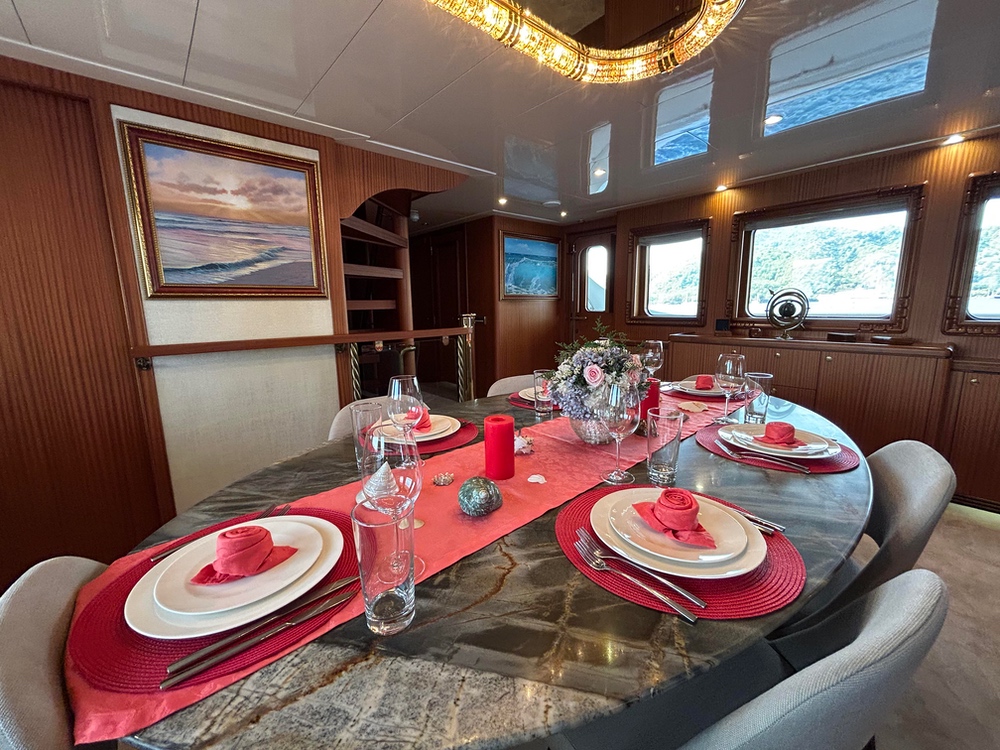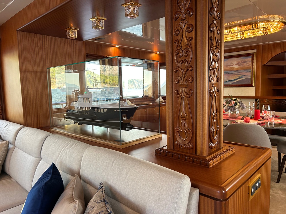 She accommodates up to 8 guests across 4 luxurious cabins, each designed for privacy and comfort. An additional 2 crew cabins with 4 berths ensure professional service on board. With 5 elegant bathrooms, every detail reflects thoughtful craftsmanship and quality.