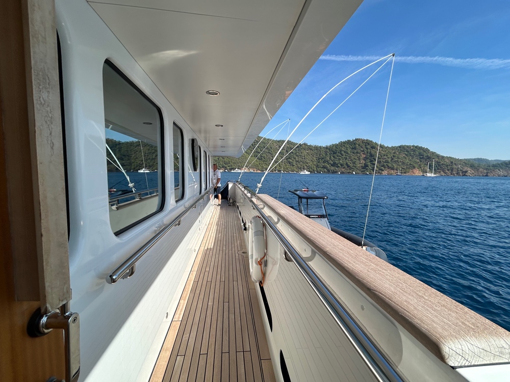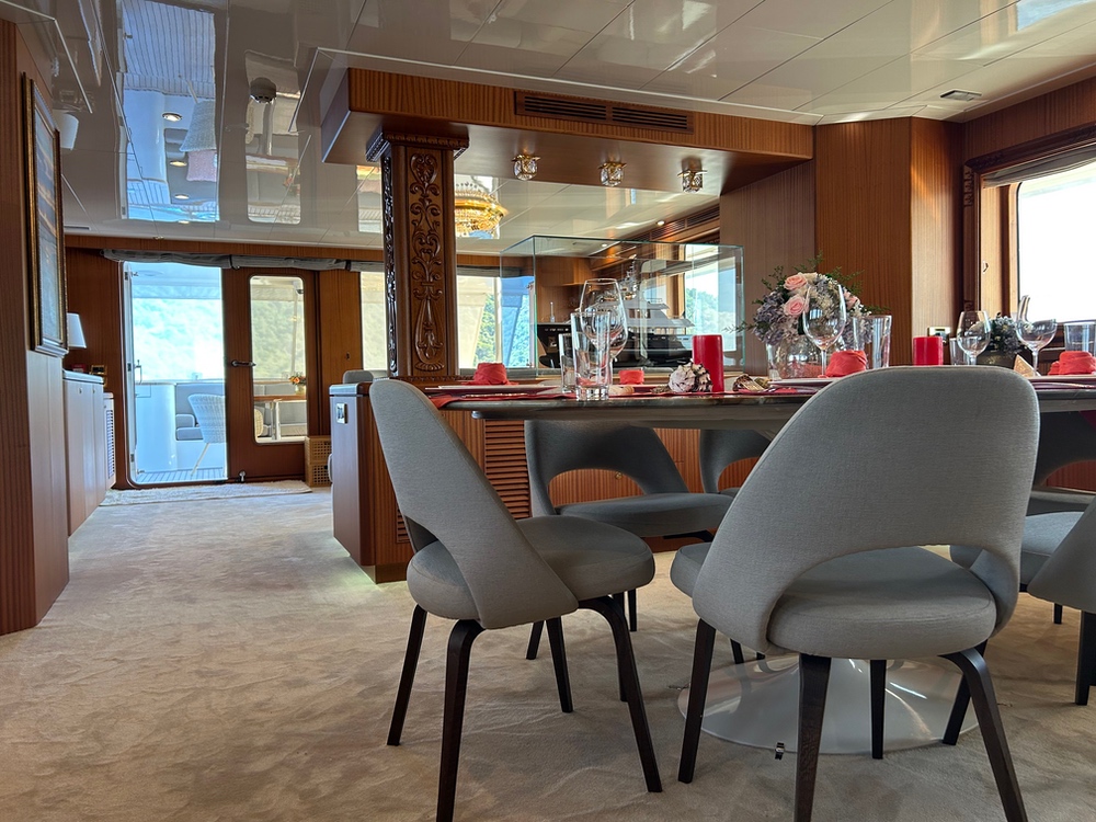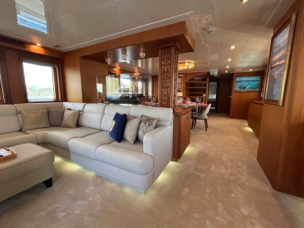 Her large fuel capacity of 36 000 litres and 4 700 litre freshwater tank make her an ideal yacht for extended journeys. Whether exploring remote coastlines or cruising between Mediterranean harbours.