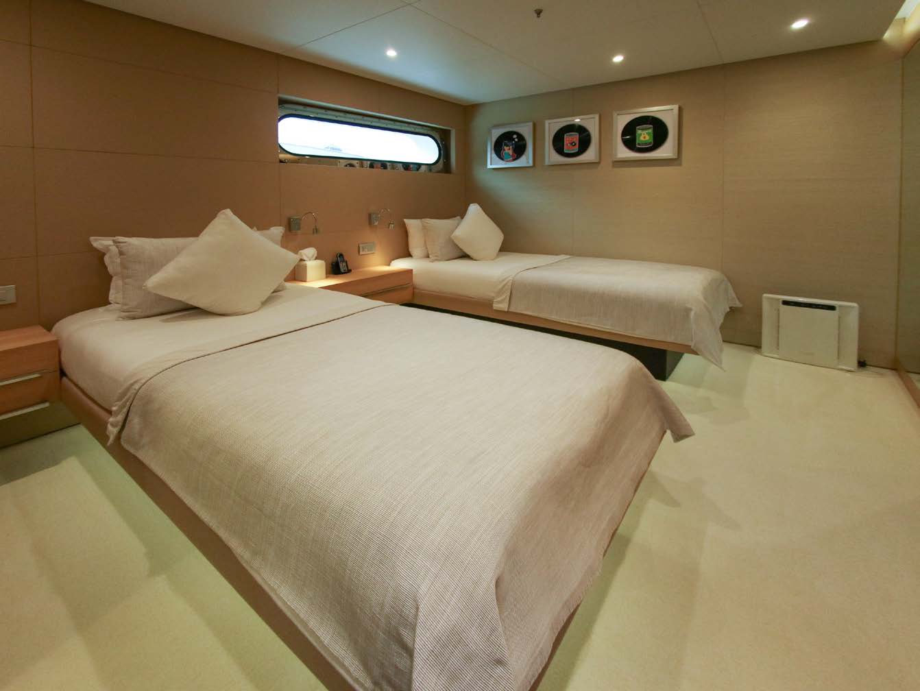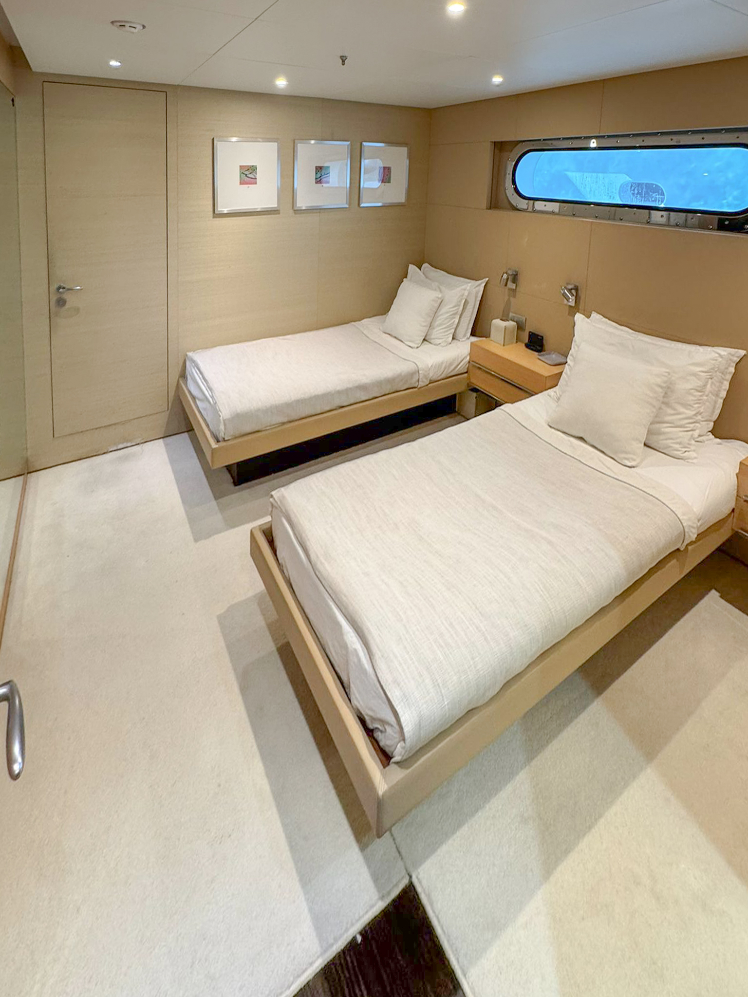 The full-beam Upper Salon is a truly unique feature for a yacht this size. None of the other yachts in the category or bigger doesn’t provide the same size for a second Salon. Spacious full-beam master stateroom is located on the Main deck and 4 other cabins are on the Lower deck, all with en-suite bathrooms. FNM 40 can accommodate up to 10 guests and 7 crew.