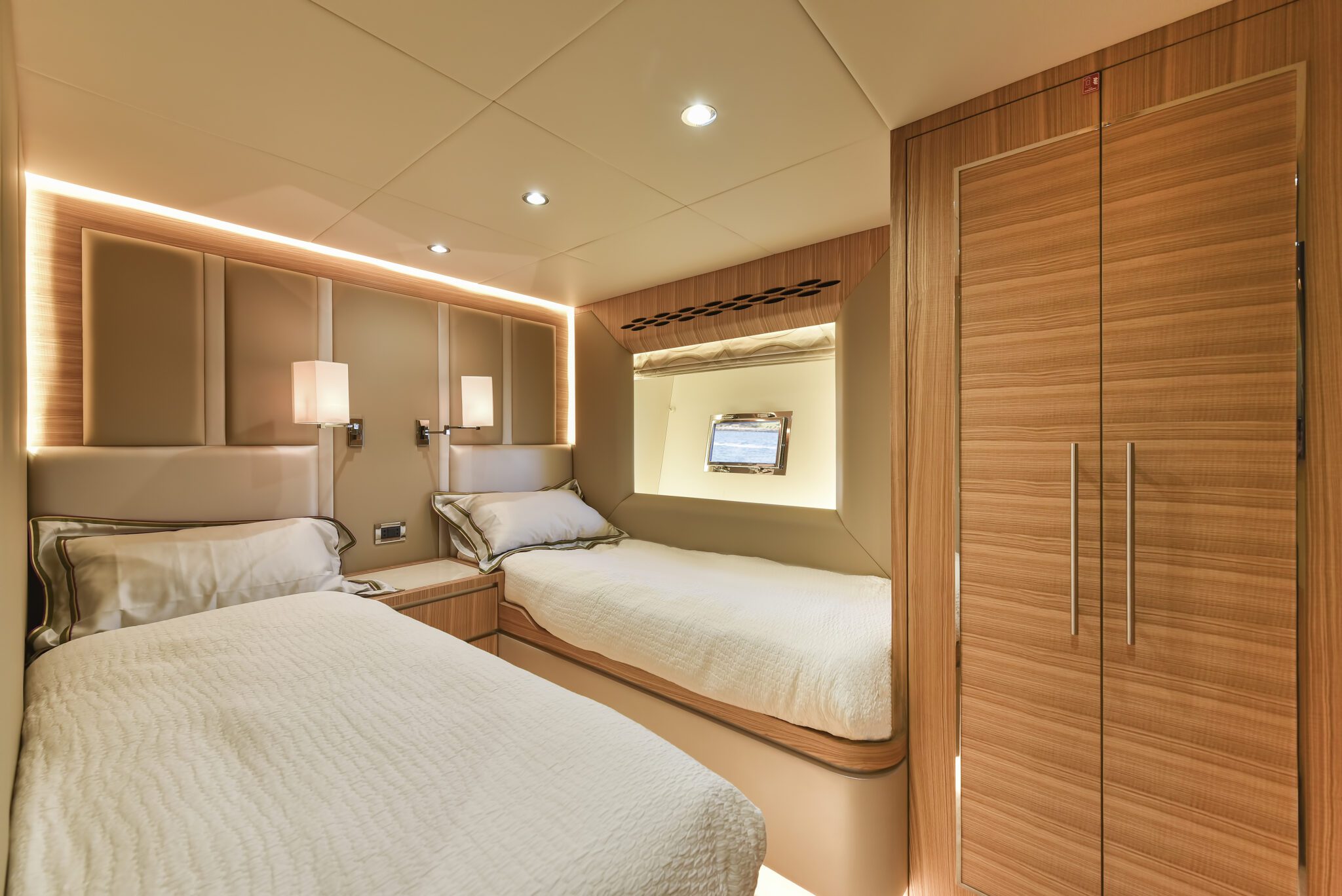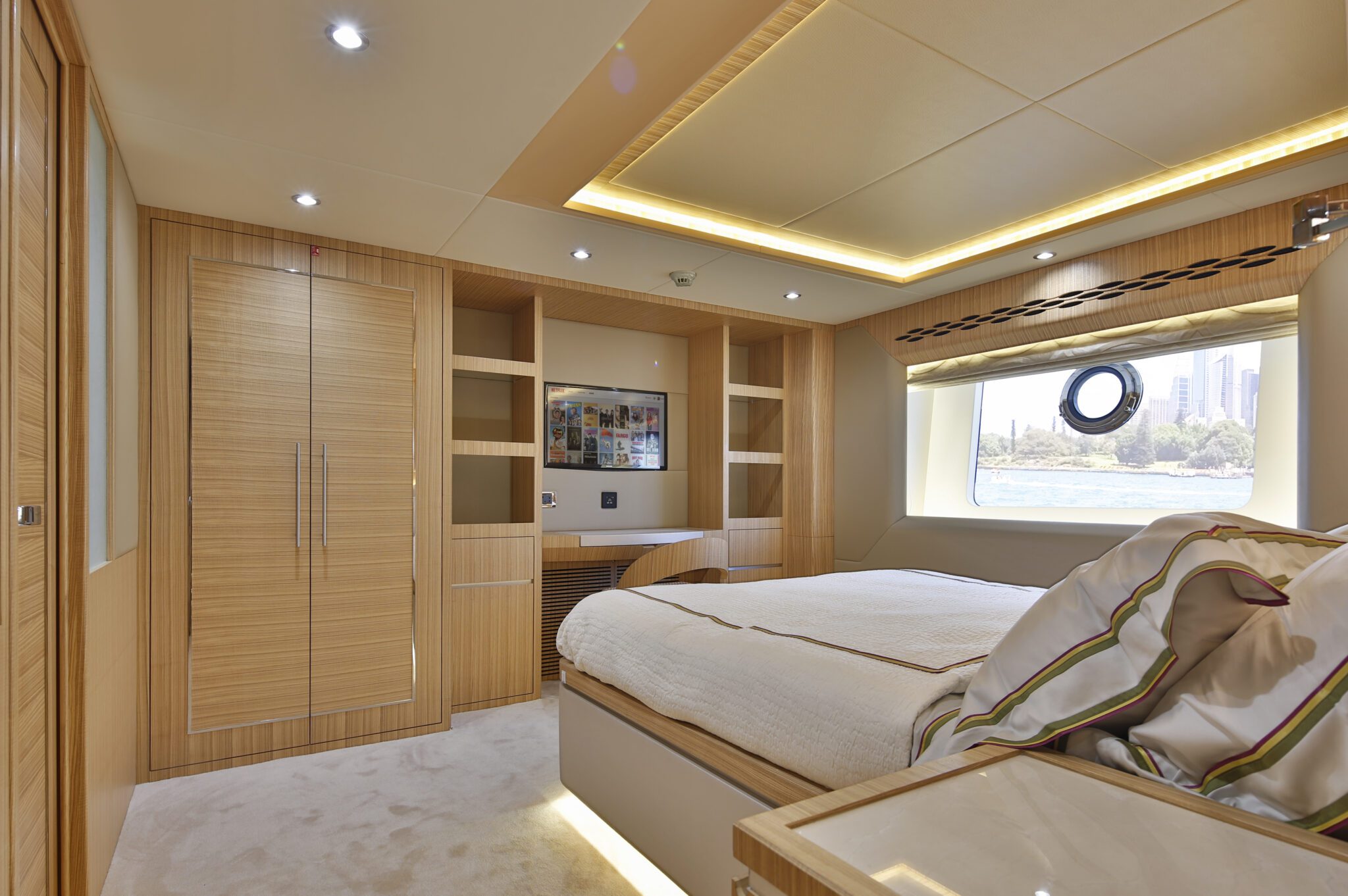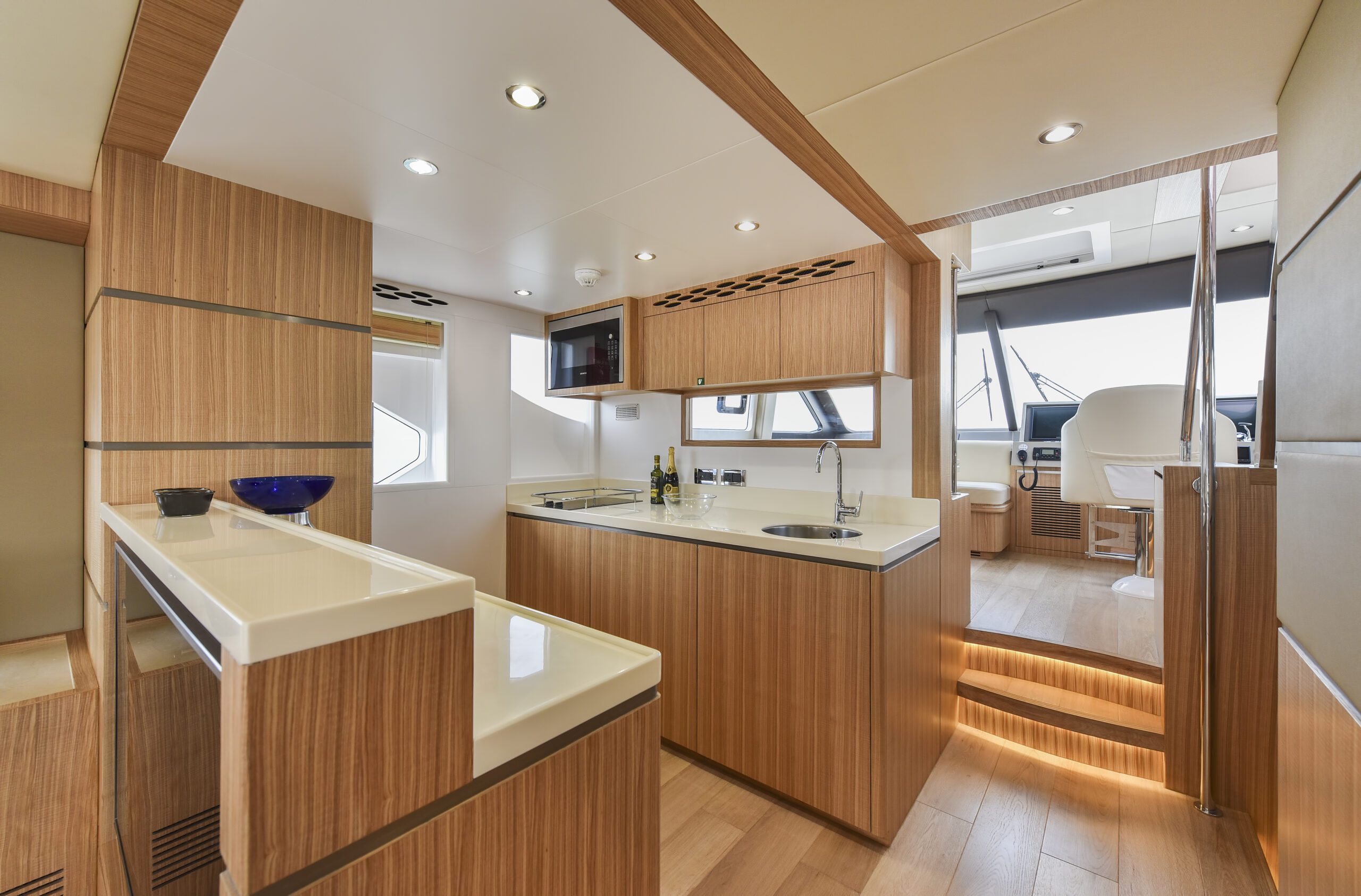 The first hybrid hull from Gulf Craft, the Nomad 65 is chic yet powerful and feels ultra-roomy due to a free-flowing use of onboard space. With large above and below-deck quarters, guests can enjoy extended time out at sea. This yacht offers a fantastic overall package of features, including a huge fly-bridge space for a 65-foot yacht.