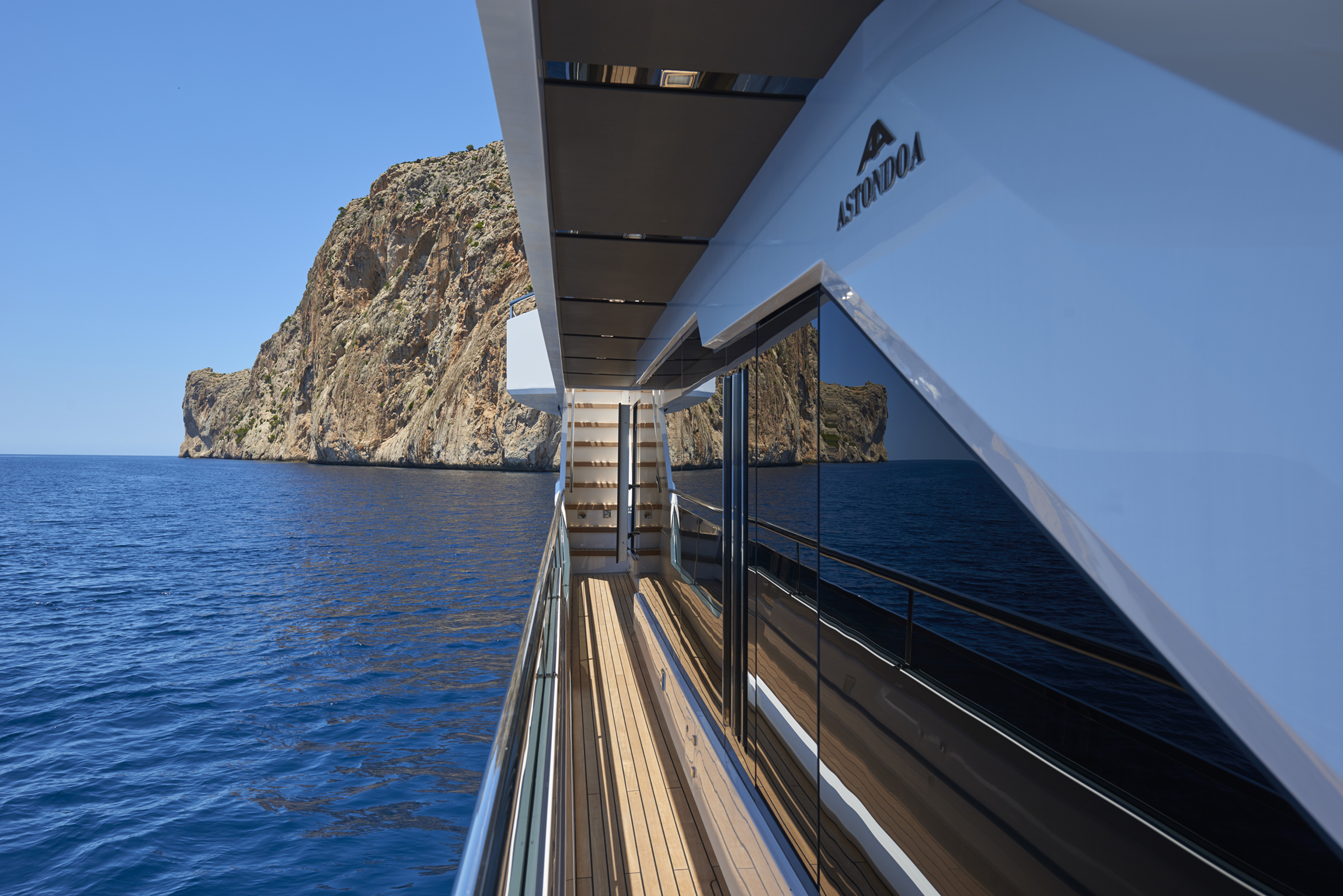 Built for many family members and friends to share the experience of yachting, the Astondoa 110 Century welcomes you with open arms and open spaces. Boasting many Megayacht amenities, including the spacious flybridge, Sky Lounge and tender garage, Astondoa makes excellent use of every inch of exterior and interior space, providing areas for socializing, sunning, relaxing, dining and enjoying the excitement and exploration of watersports.