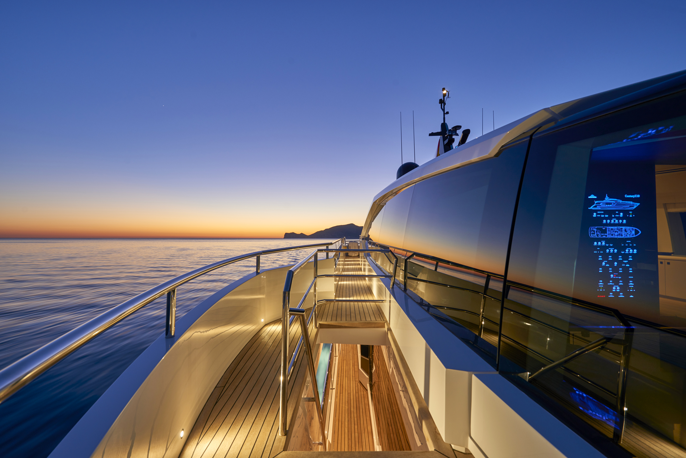 While its aerodynamic lines and solid construction make the Astondoa 110 Century seaworthy, its power is balanced with grace as one moves from bow to stern with ease, accessing each level of the yacht, enjoying the atmosphere created in each.