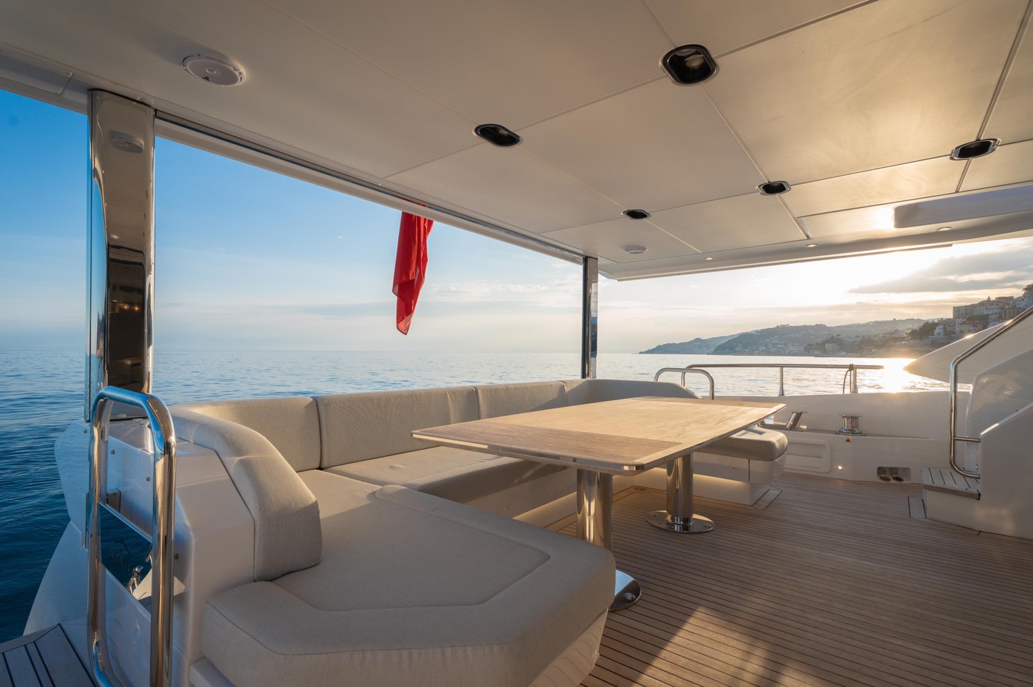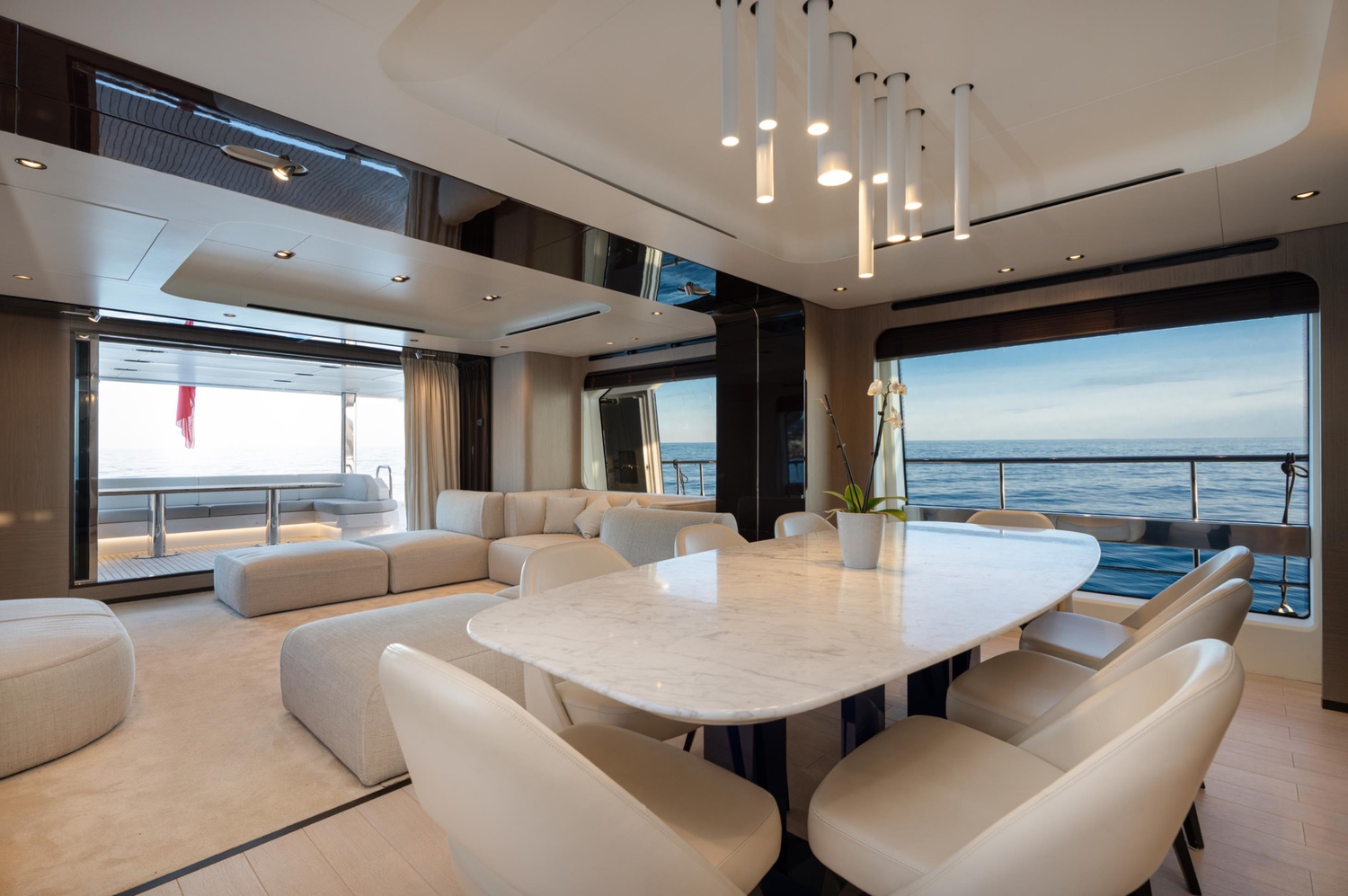 - Expansive outdoor areas, including a flybridge and sundeck with bar, lounge, and sunbathing zones.