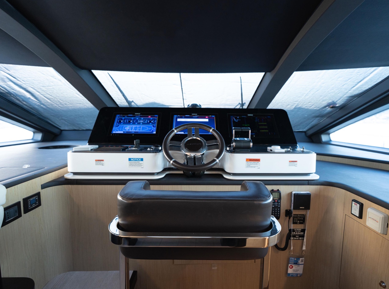 - State-of-the-art navigation suite with Simrad NSOevo3S chartplotters, autopilot, and integrated Naviop system.