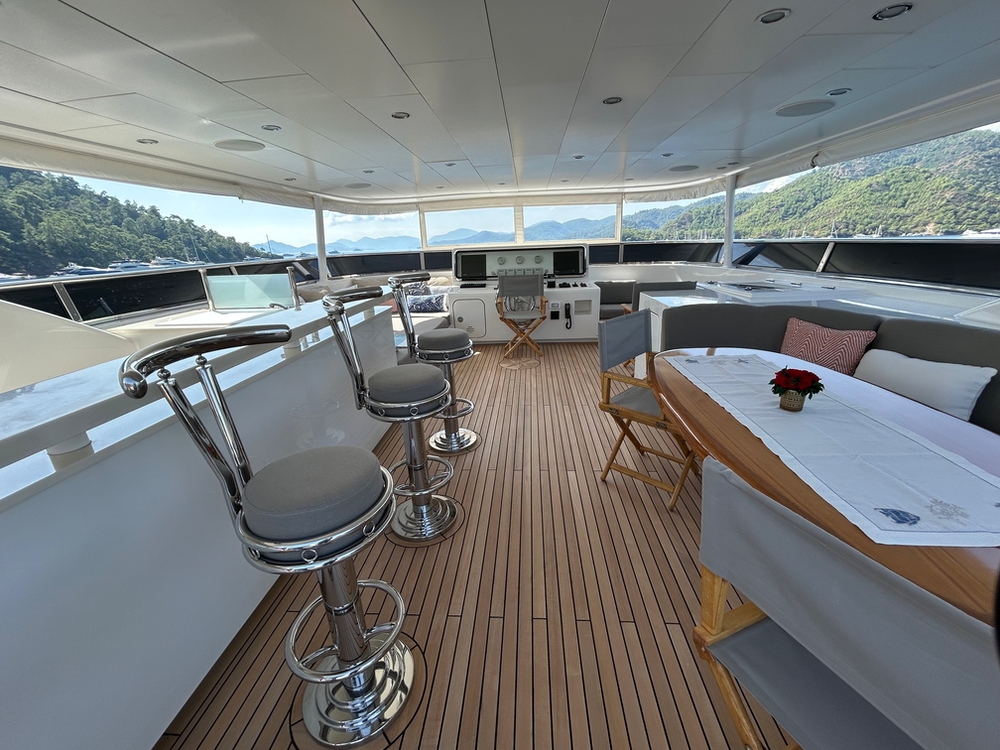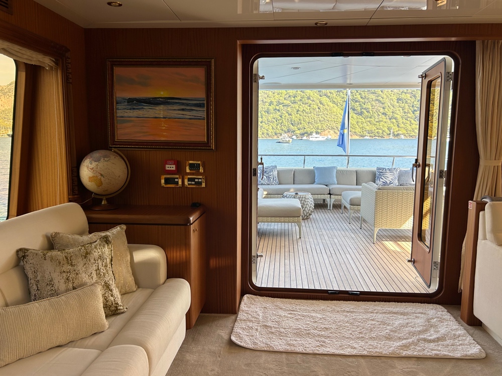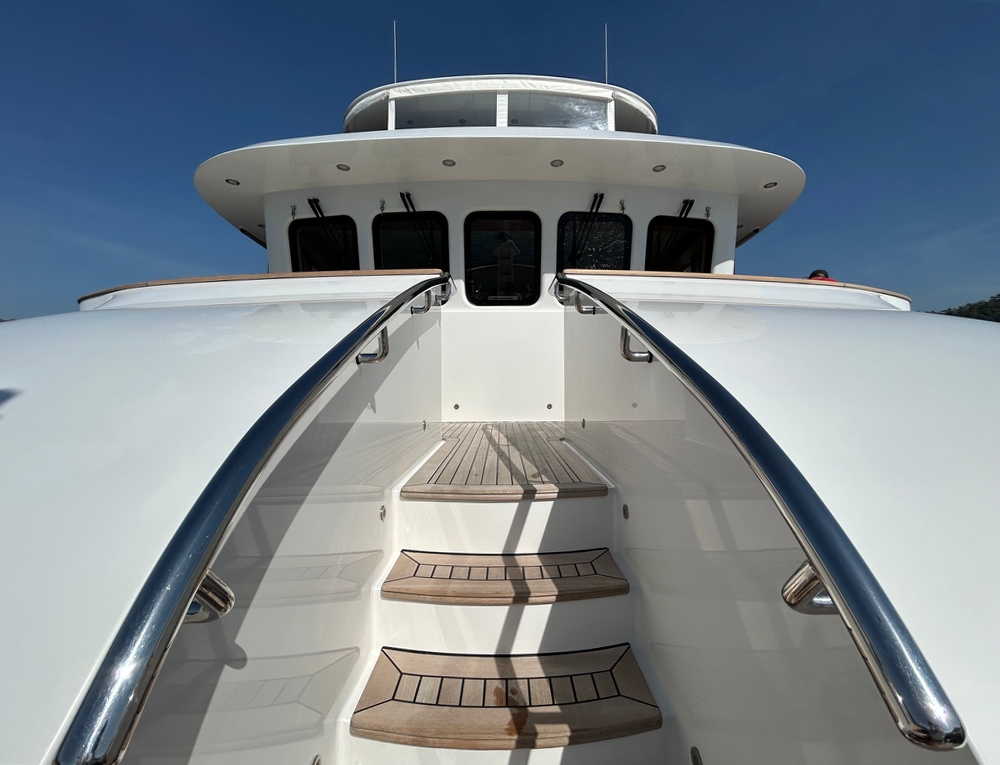 Built in 2011, the Bandido 90 represents the best of German engineering blended with timeless explorer-yacht design. With her robust steel hull and aluminium superstructure, she offers the stability, safety, and seagoing confidence expected of a true long-range motor yacht — while delivering the comfort and refinement of a contemporary superyacht.