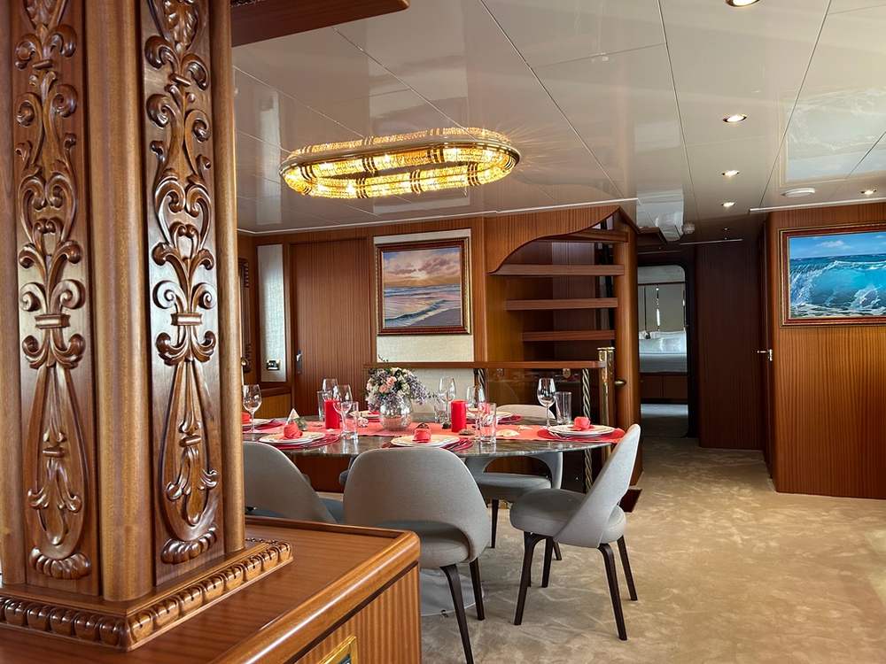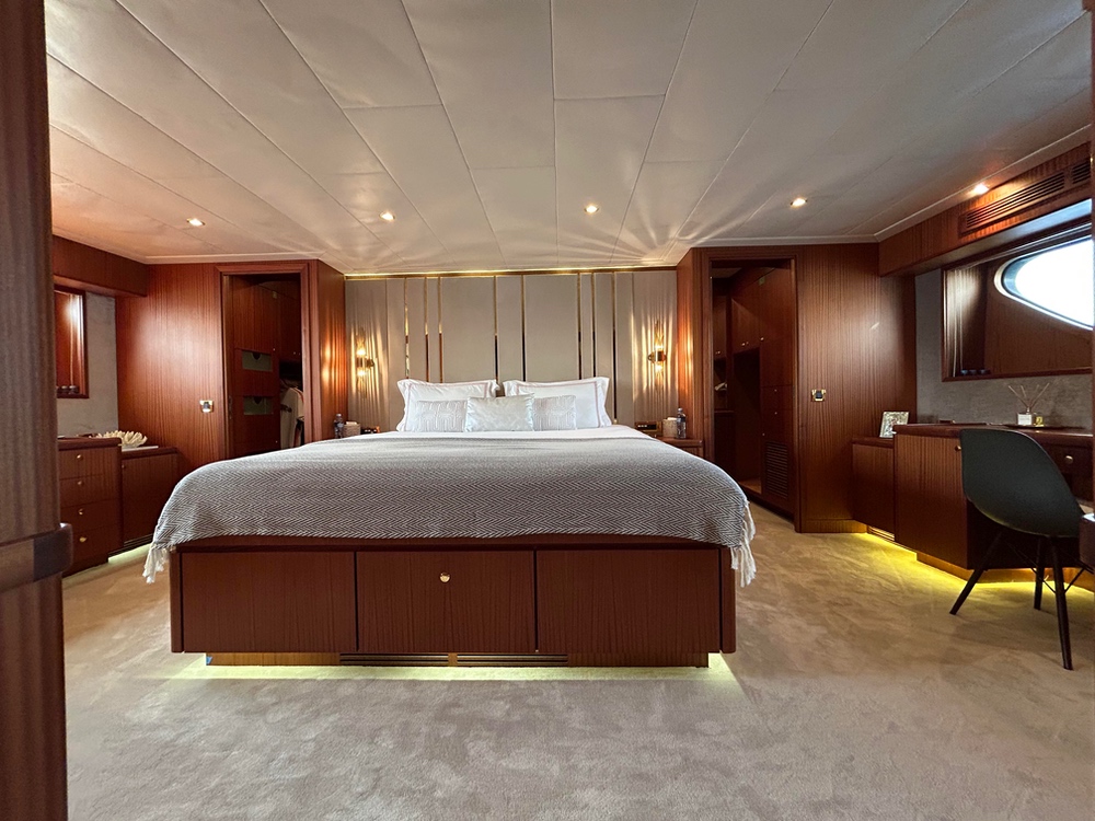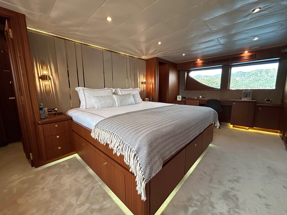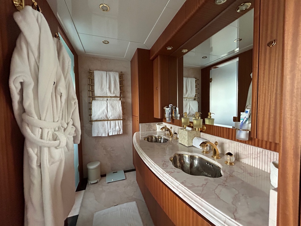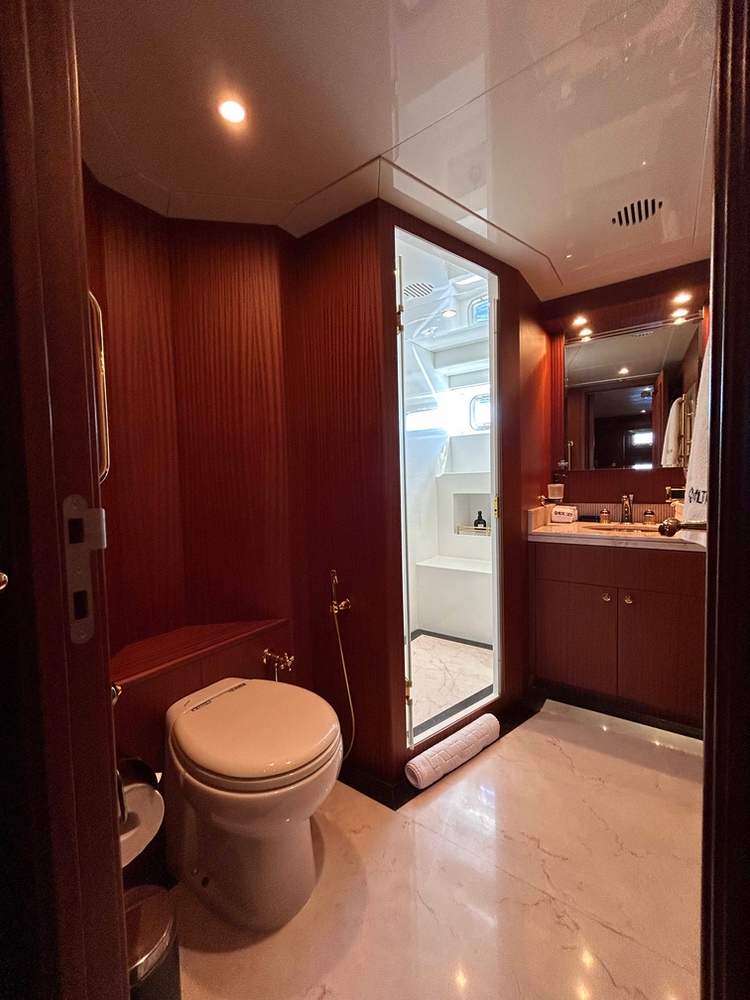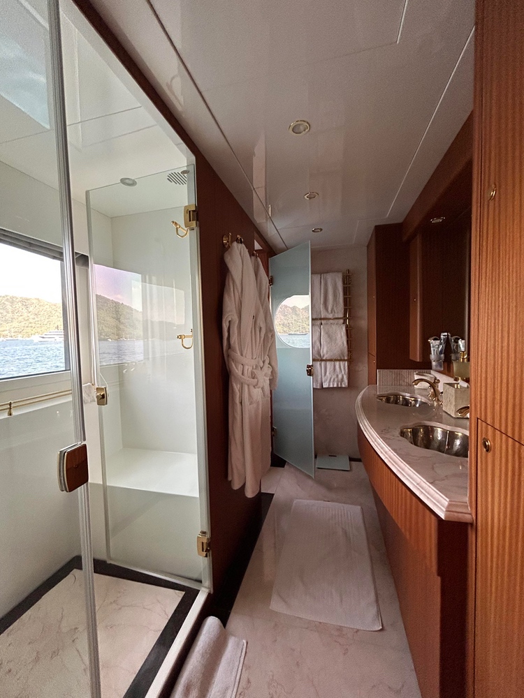 She accommodates up to 8 guests across 4 luxurious cabins, each designed for privacy and comfort. An additional 2 crew cabins with 4 berths ensure professional service on board. With 5 elegant bathrooms, every detail reflects thoughtful craftsmanship and quality.