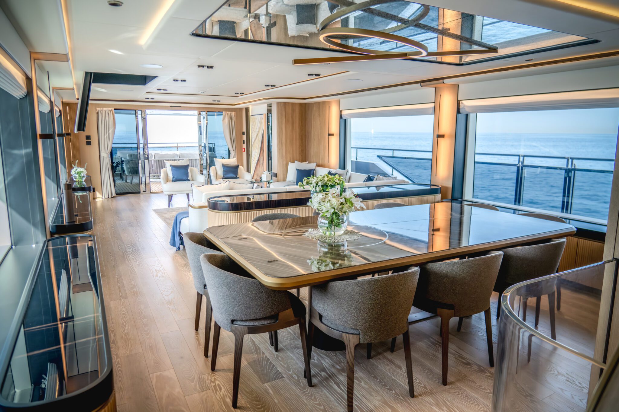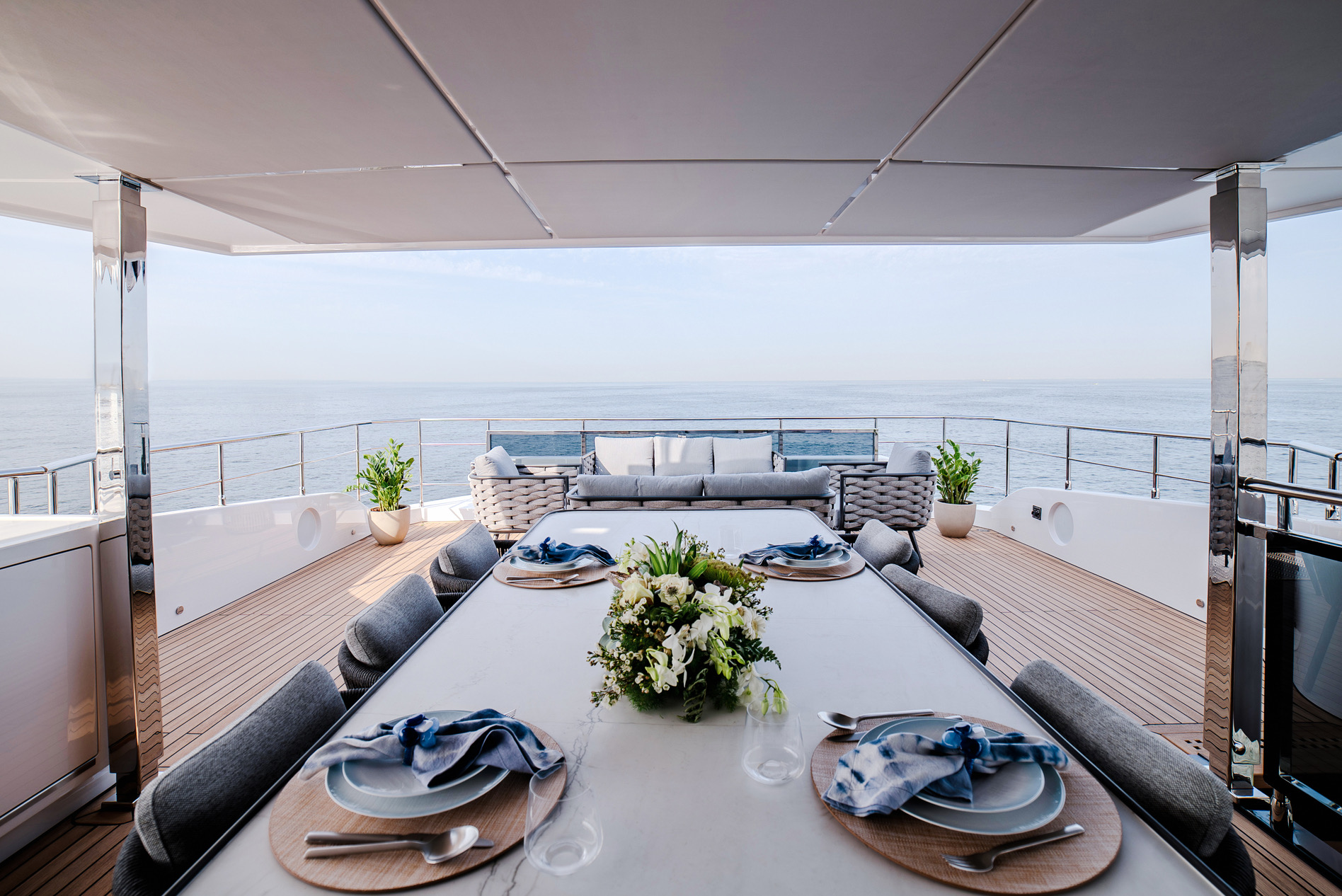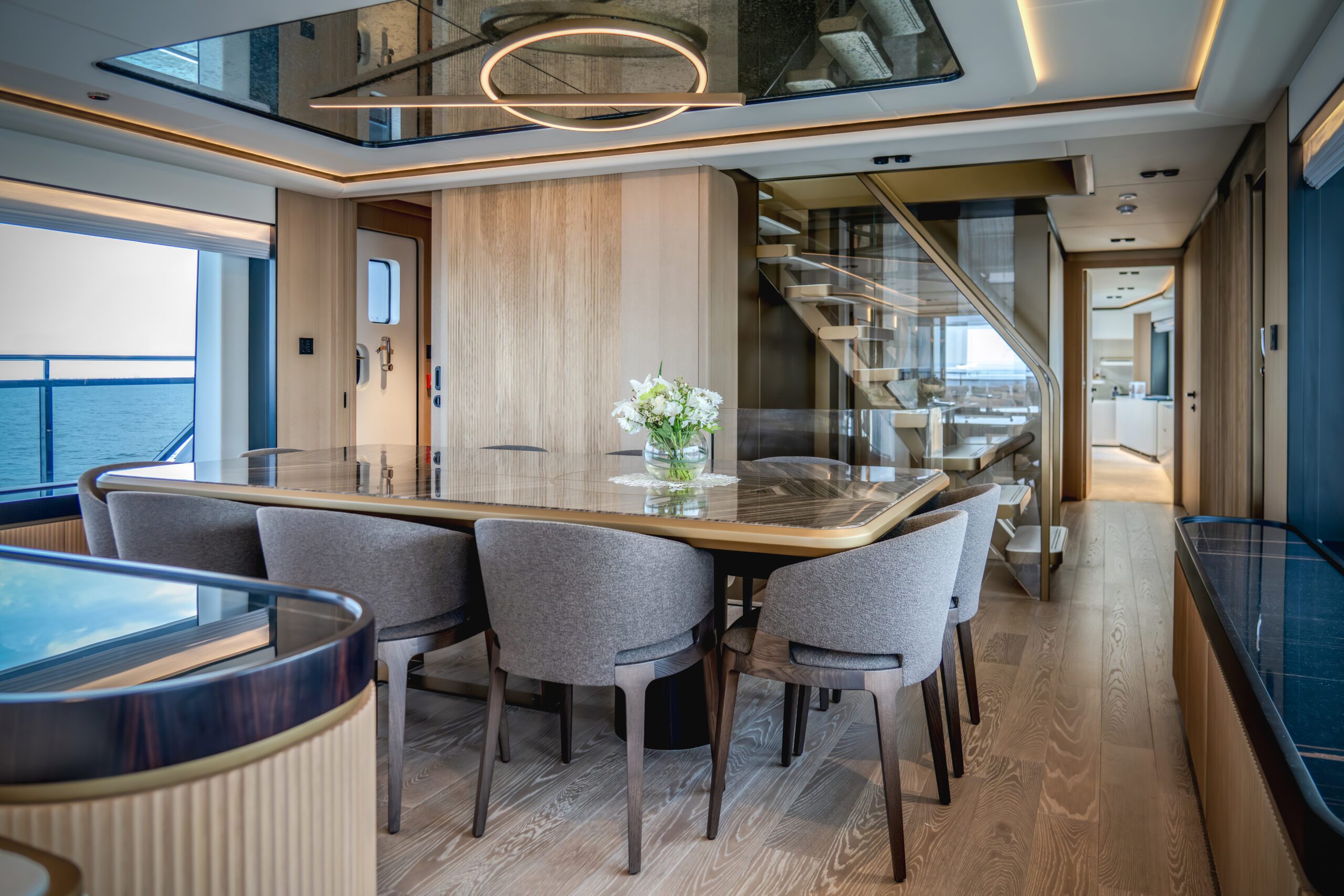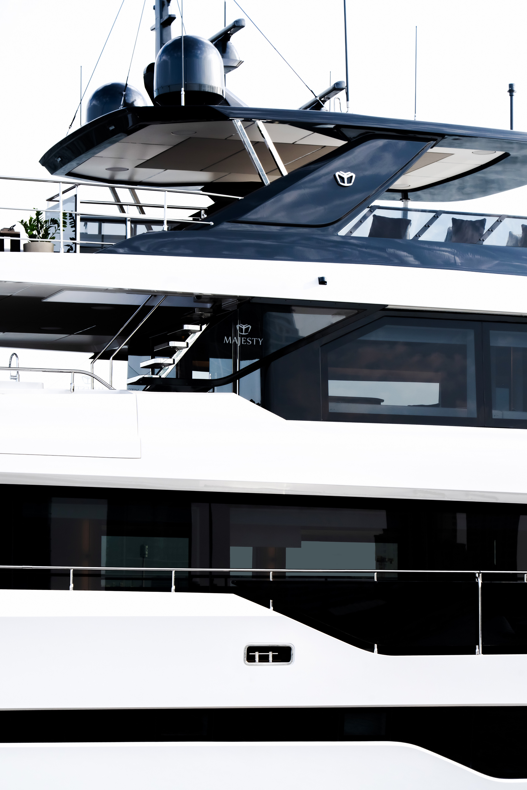 Majesty 112 Terrace Building on the groundbreaking design of its predecessor, the Majesty 112 Terrace elevates Gulf Craft’s superyacht collection through innovation and design. This latest masterpiece introduces a sprawling flybridge, enhancing open-air entertainment and luxurious cruising. Combining Gulf Craft’s advanced engineering with Phathom Studio’s visionary design, the Majesty 112 Terrace seamlessly blends opulence, functionality, and performance, offering an unrivalled yachting experience.