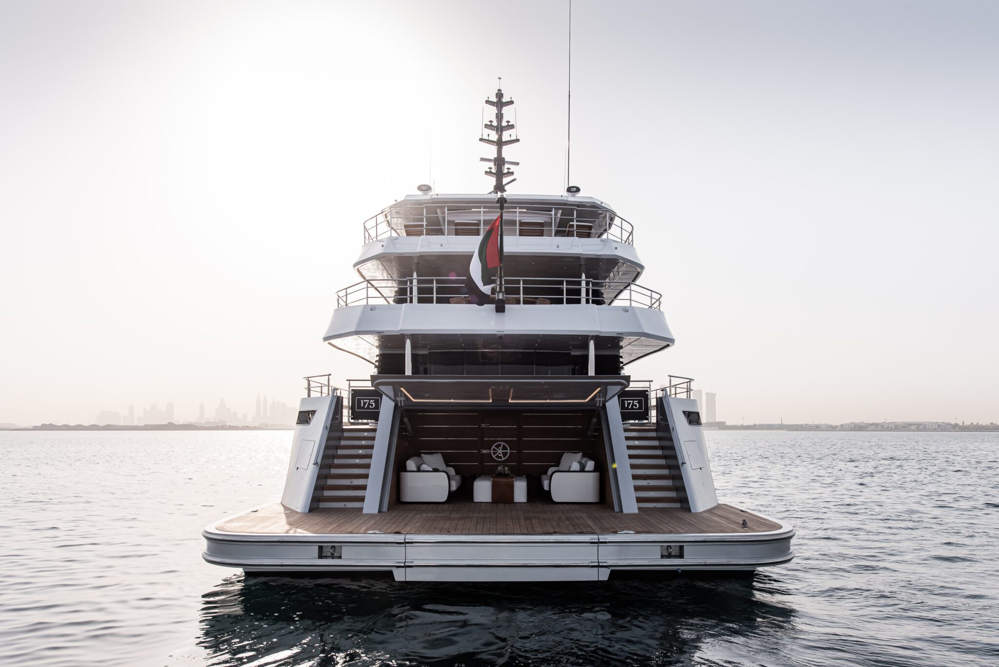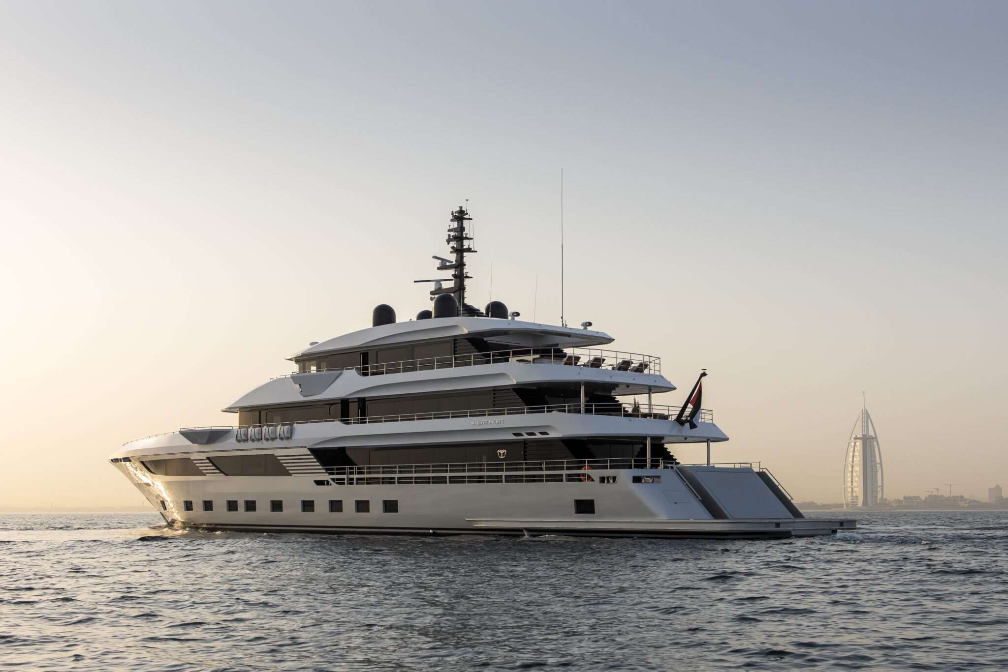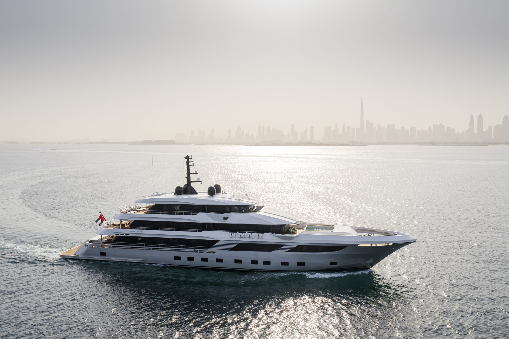 At 56m, the Majesty 175 is designed by the Italian award-winning firm Cristiano Gatto Design Studio. Offering 7 lavish staterooms across its 4 decks, the owner’s suite is situated forward on the upper deck complete with a private swimming pool and outdoor lounge area, a lavish saloon and dining area, and several deck areas for al fresco dining giving the owner and his guests uncompromising comfort. The striking 780 GT mega yacht also offers an array of amenities, such as the beach club astern, the toy garage, an optional jacuzzi, and more.