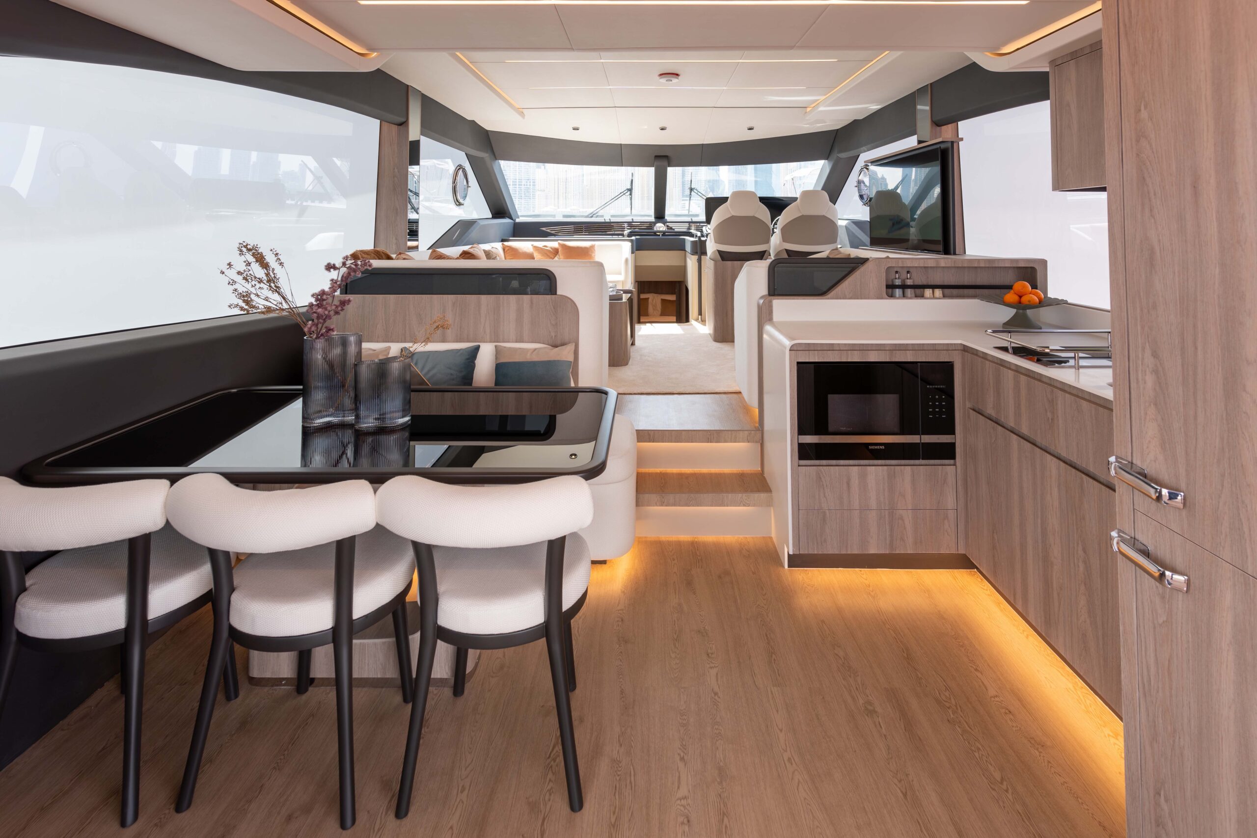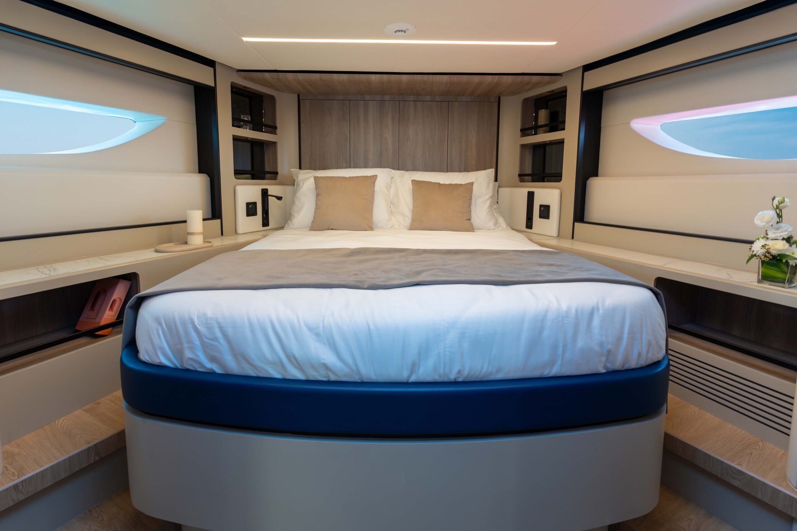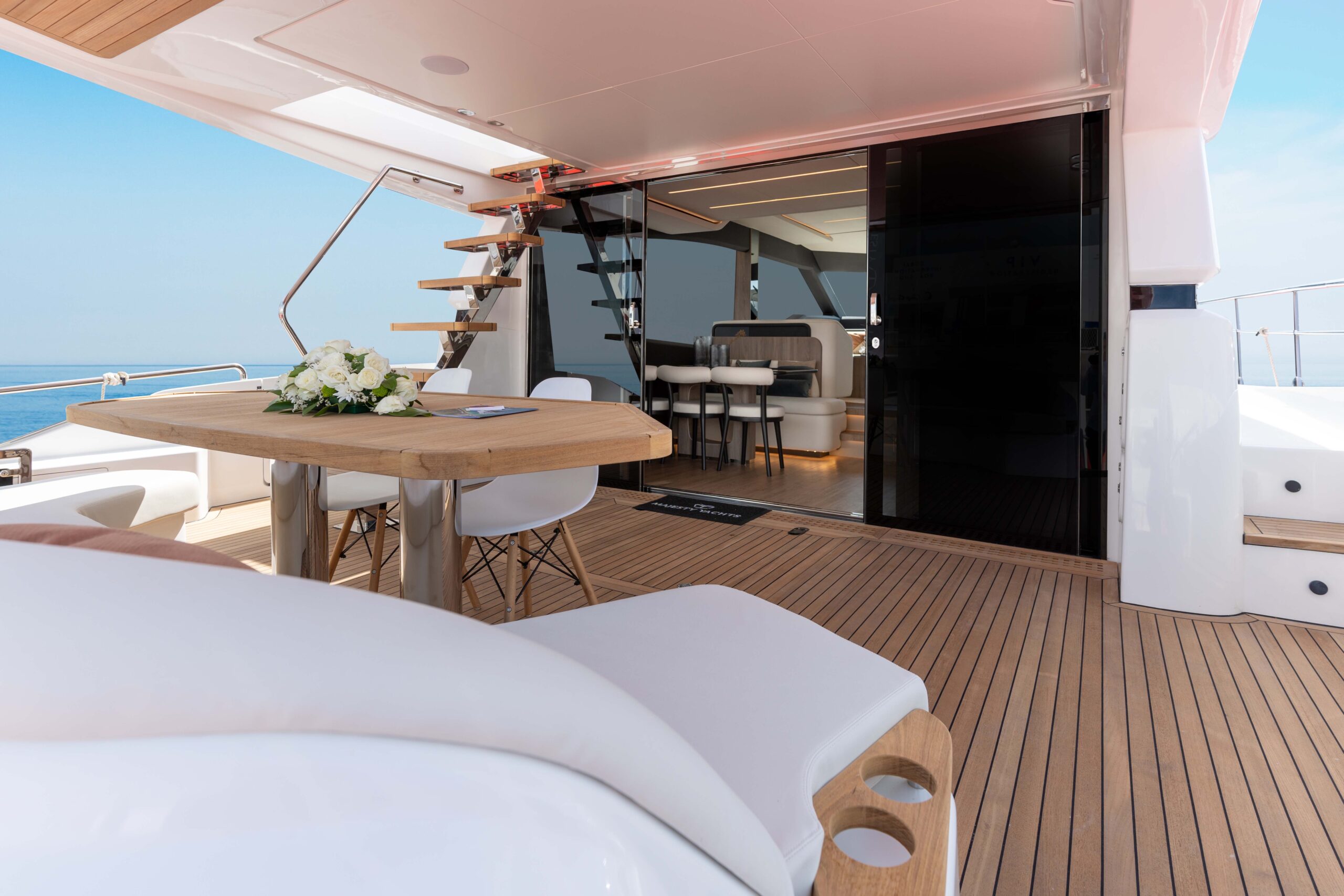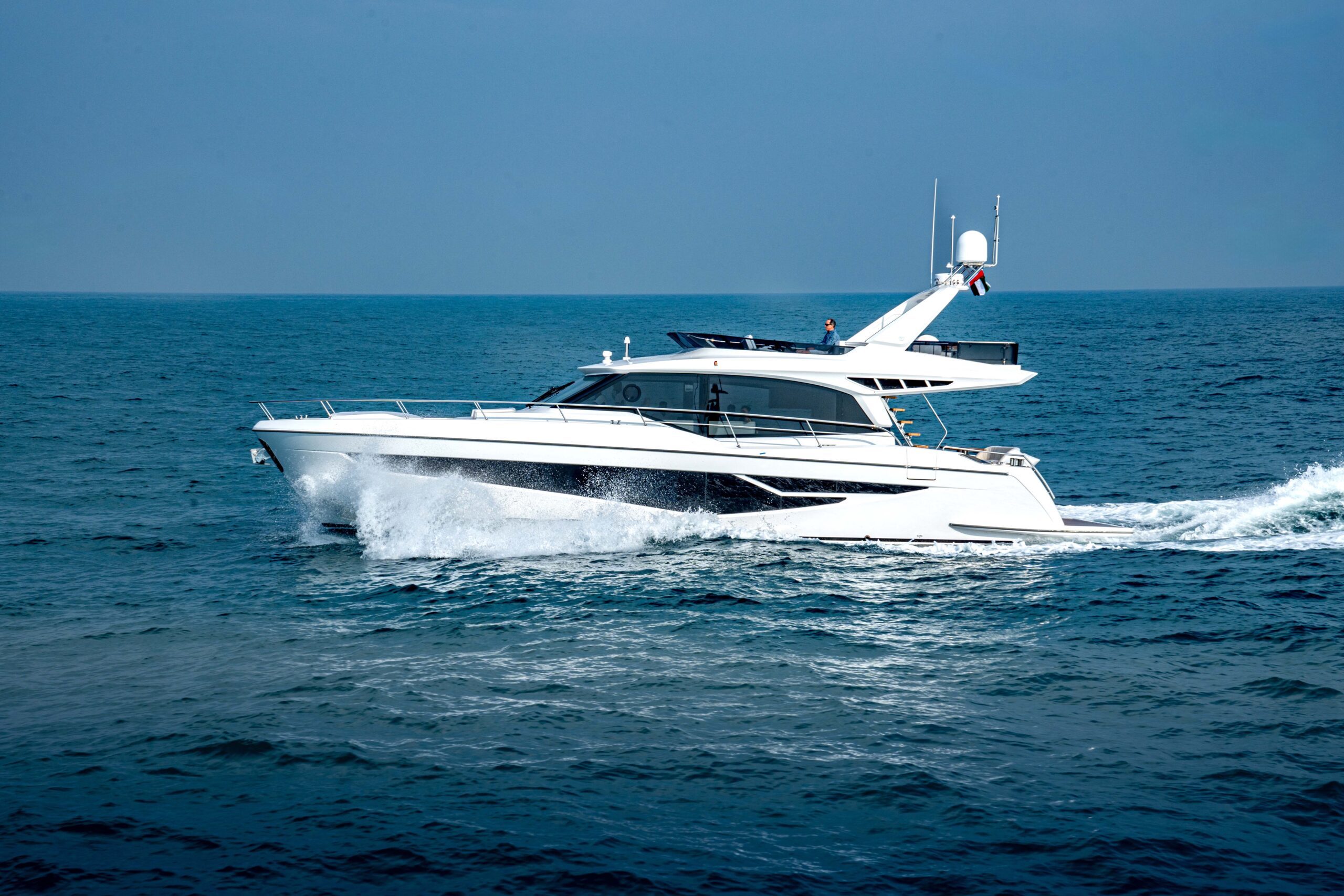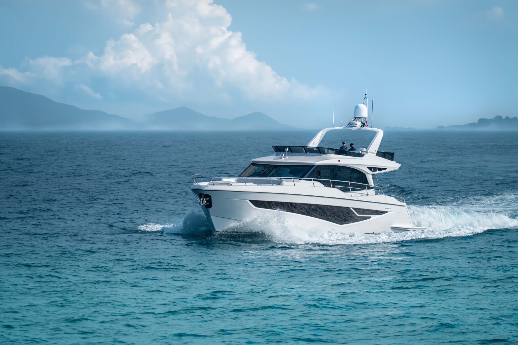 Embark on a luxurious yachting experience with the Majesty 60. Its sleek exterior and spacious overhang turn heads, offering an expansive swim platform and optional side gates for effortless boarding. Inside, bask in natural light through expansive windows, navigate with ease, and enjoy the well-equipped galley. Indulge in alfresco dining in the spacious aft cockpit and unwind in the palatial main salon. With 2 or 3 cabin layouts, private bathrooms, and customizable features, the Majesty 60 defines your yachting dream with unparalleled style and comfort.