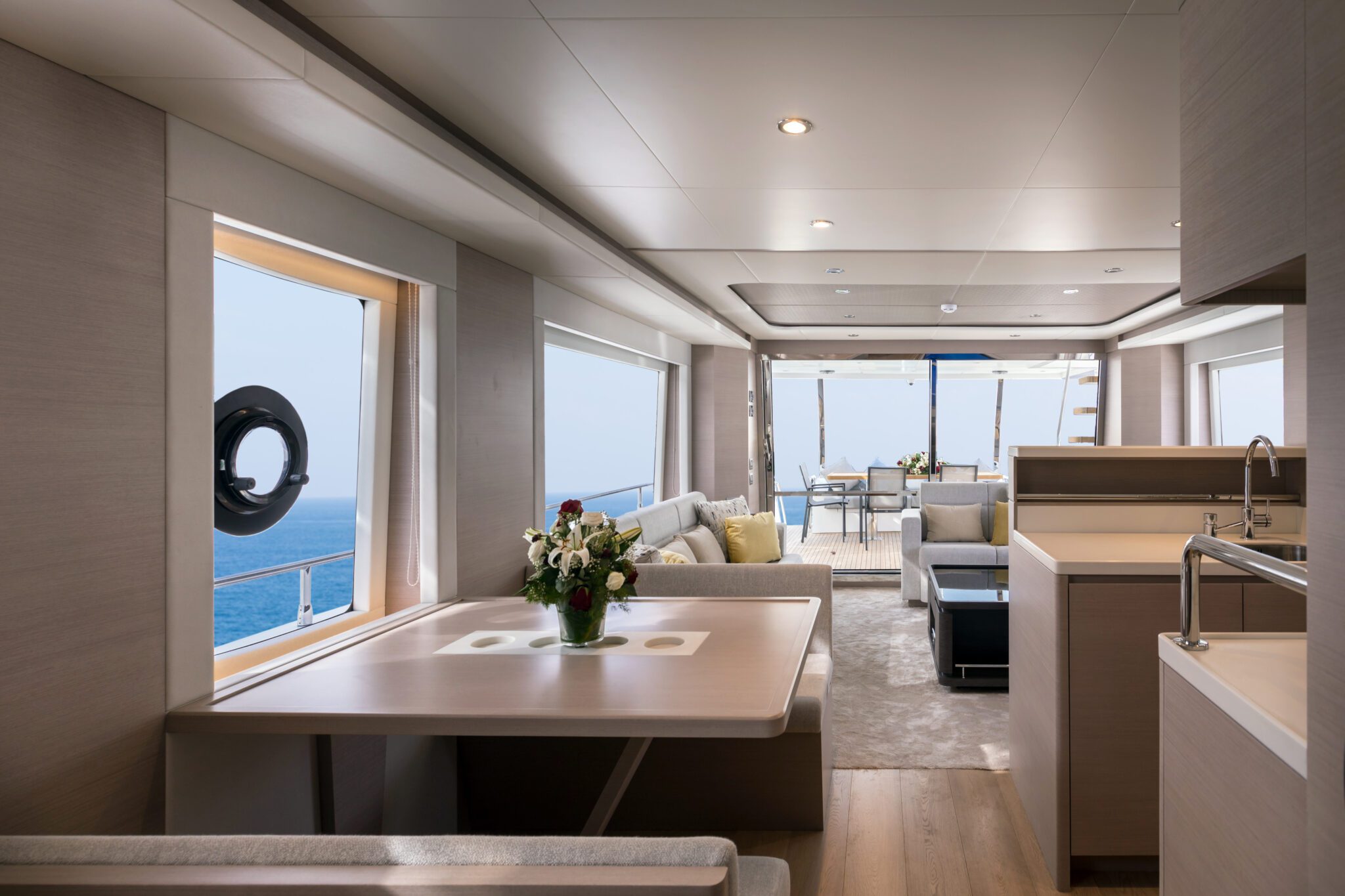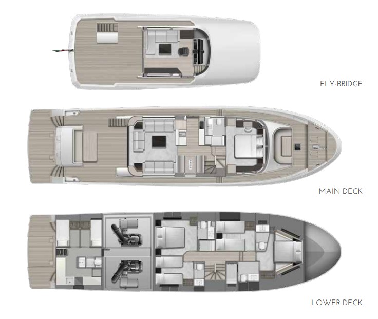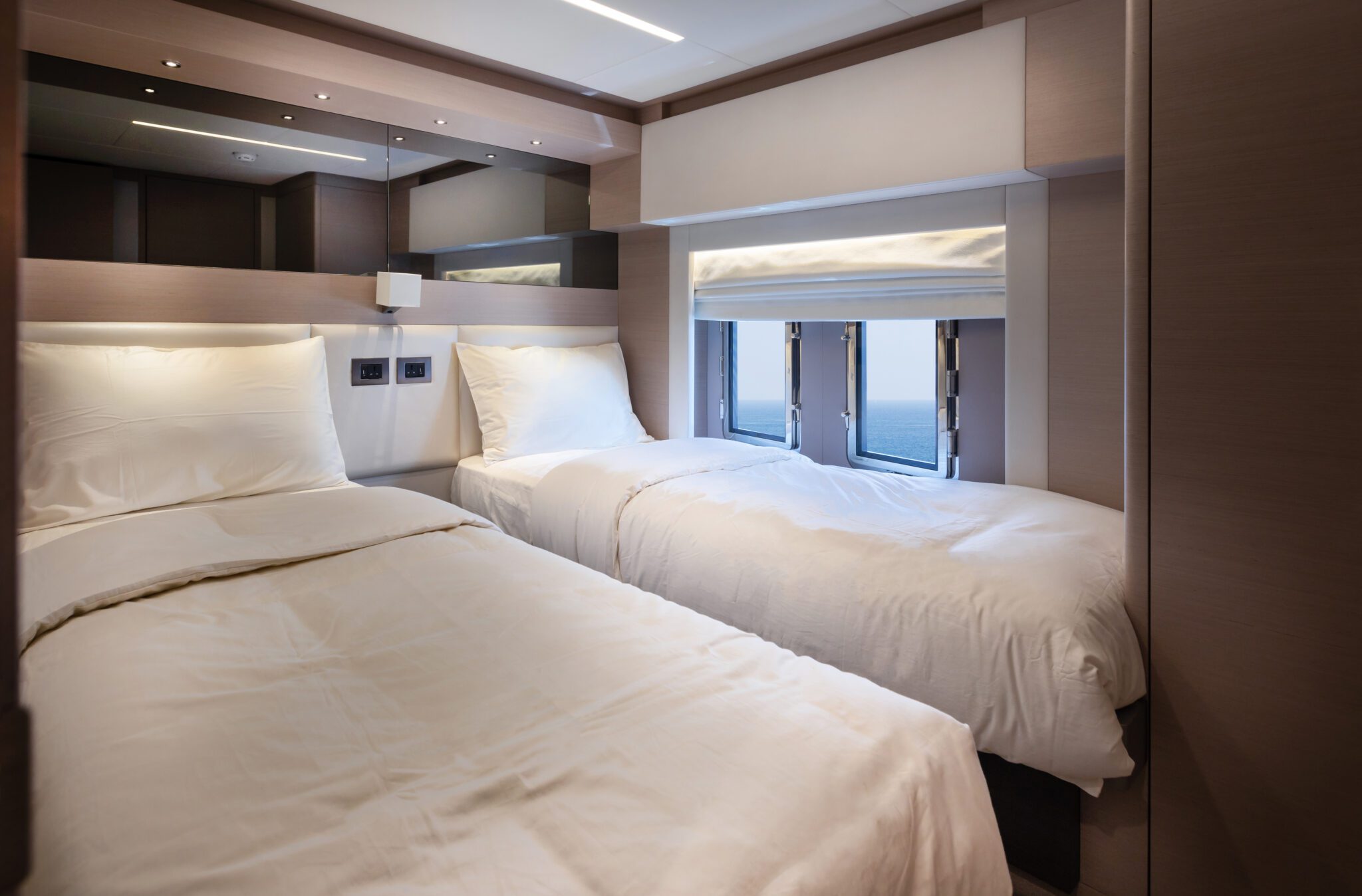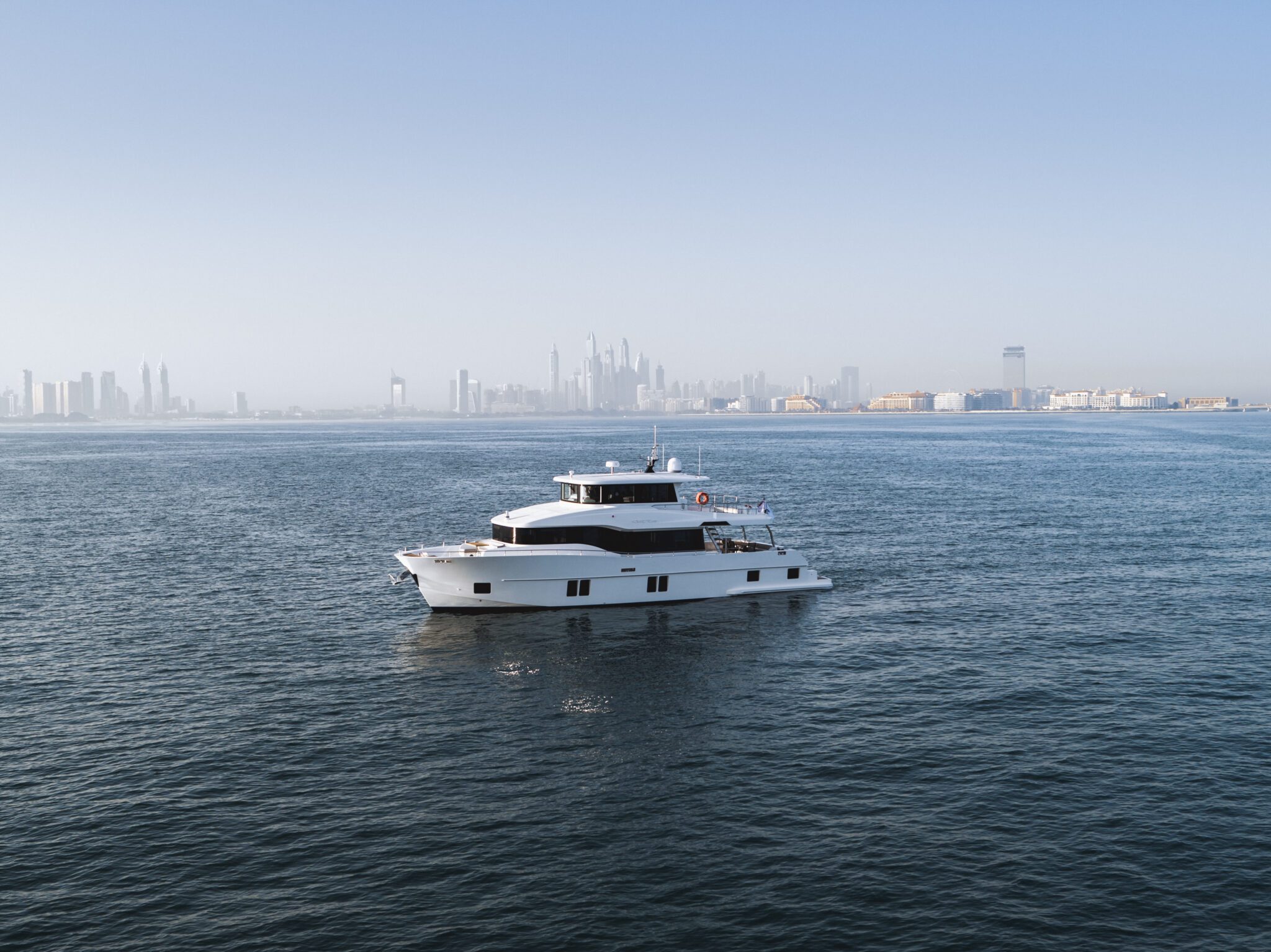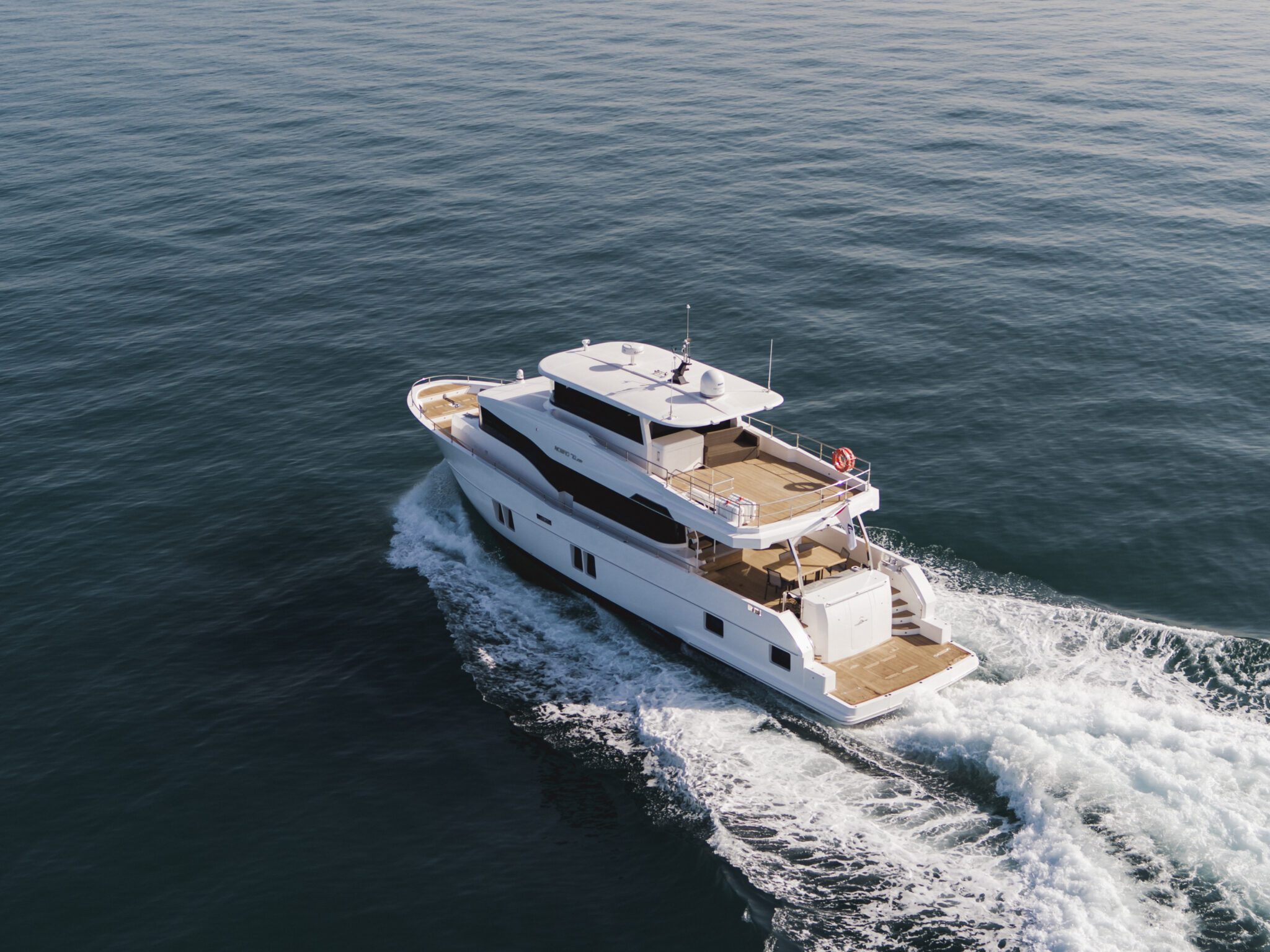 With a fine-tuned design featuring a semi-displacement hull and 70’ – 5” LOA (21.5m), the Nomad 70 SUV is able to travel through open waters and reach impressive distances at significant speeds. Her exterior lines depict strength and ruggedness, while the luxurious interiors offer significant volume — thanks to her six-metre-plus beam. Time has been spent across the SUV range to meet our clients’ requirements of powerful engines (can hit maximum speeds of 25 knots), impressive volume (housing five cabins in a 70-foot yacht), luxurious interiors, and a rugged, avant-garde aesthetic.