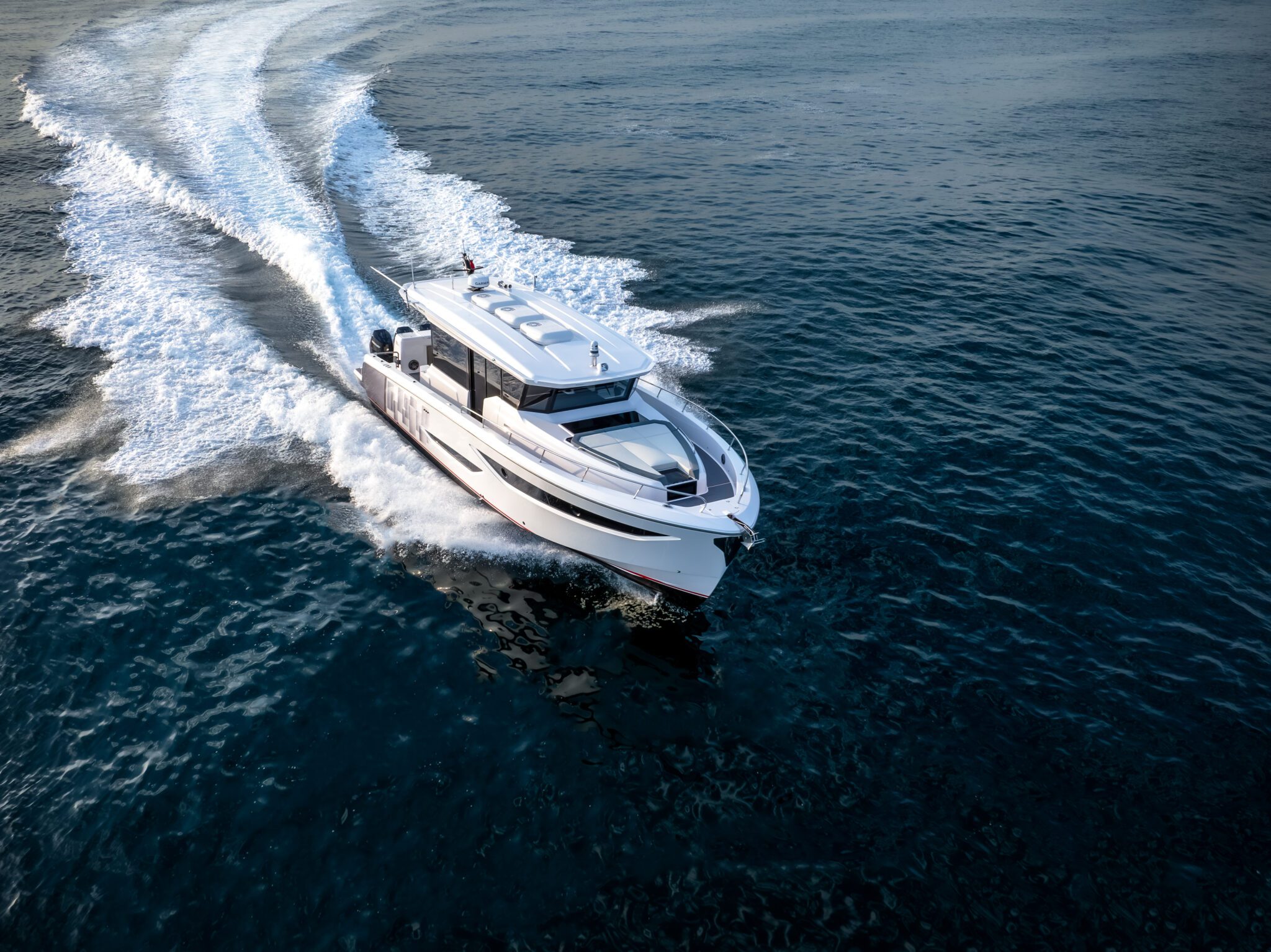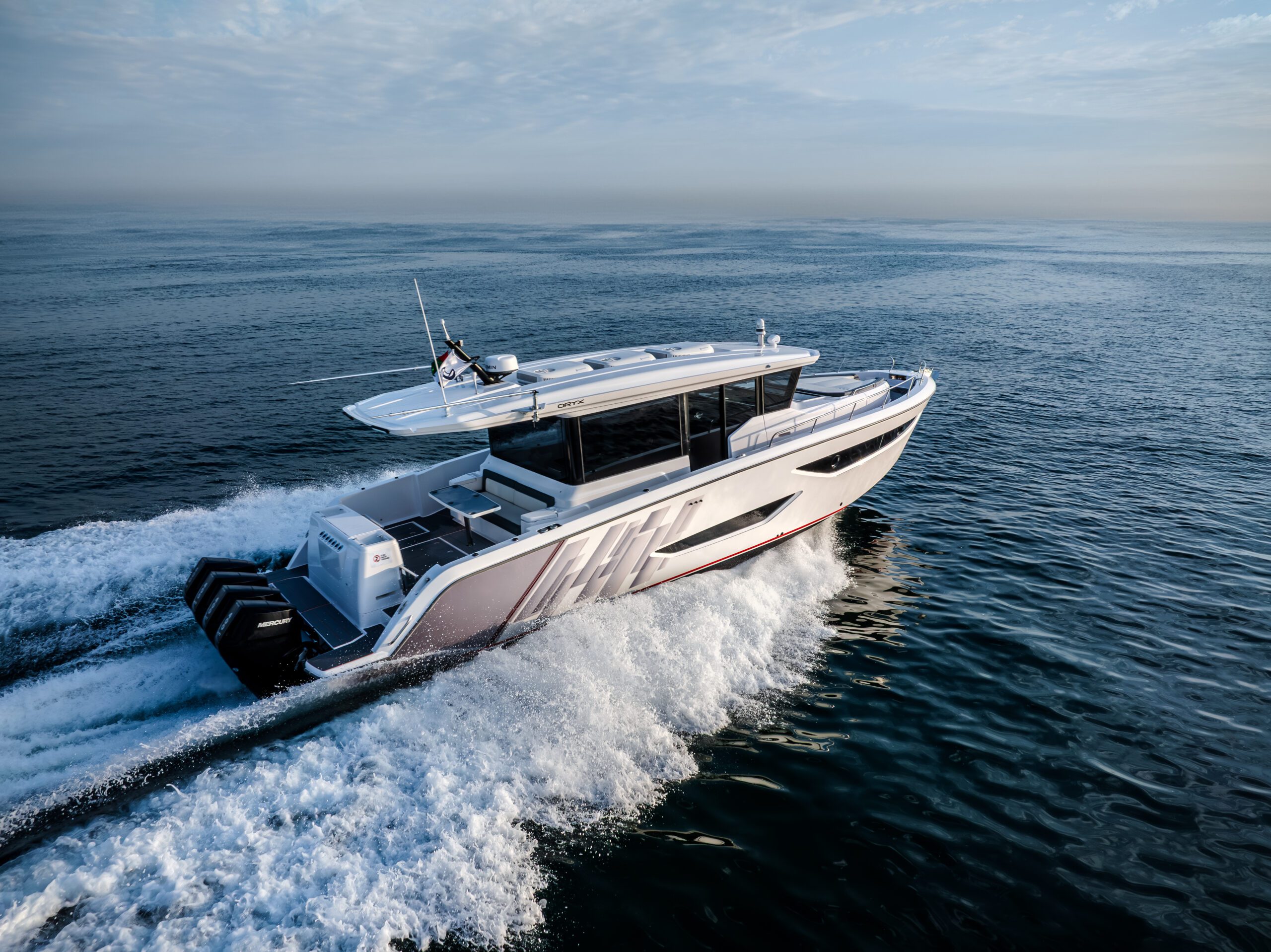 The Oryx 47 is more than a sport cruiser-it’s a statement. Blending raw power with refined luxury, this 4 7-footer delivers an exhilarating ride at speed and pure comfort at anchor. Designed for those who demand more, it transforms every journey into an unforgettable experience. Equipped with an enclosed cabin, providing enhanced protection from the elements and a more controlled climate, suitable for all-weather cruising.