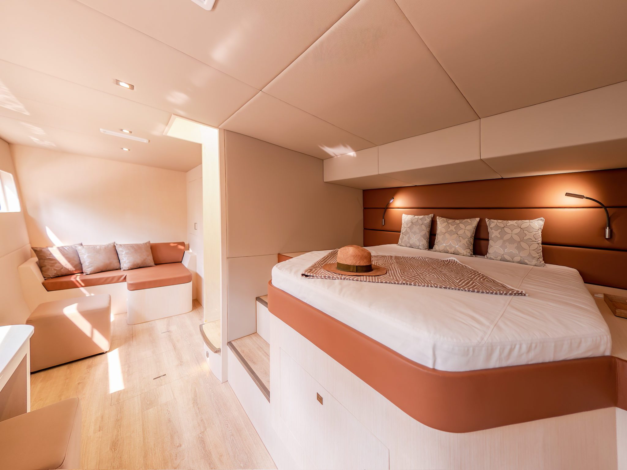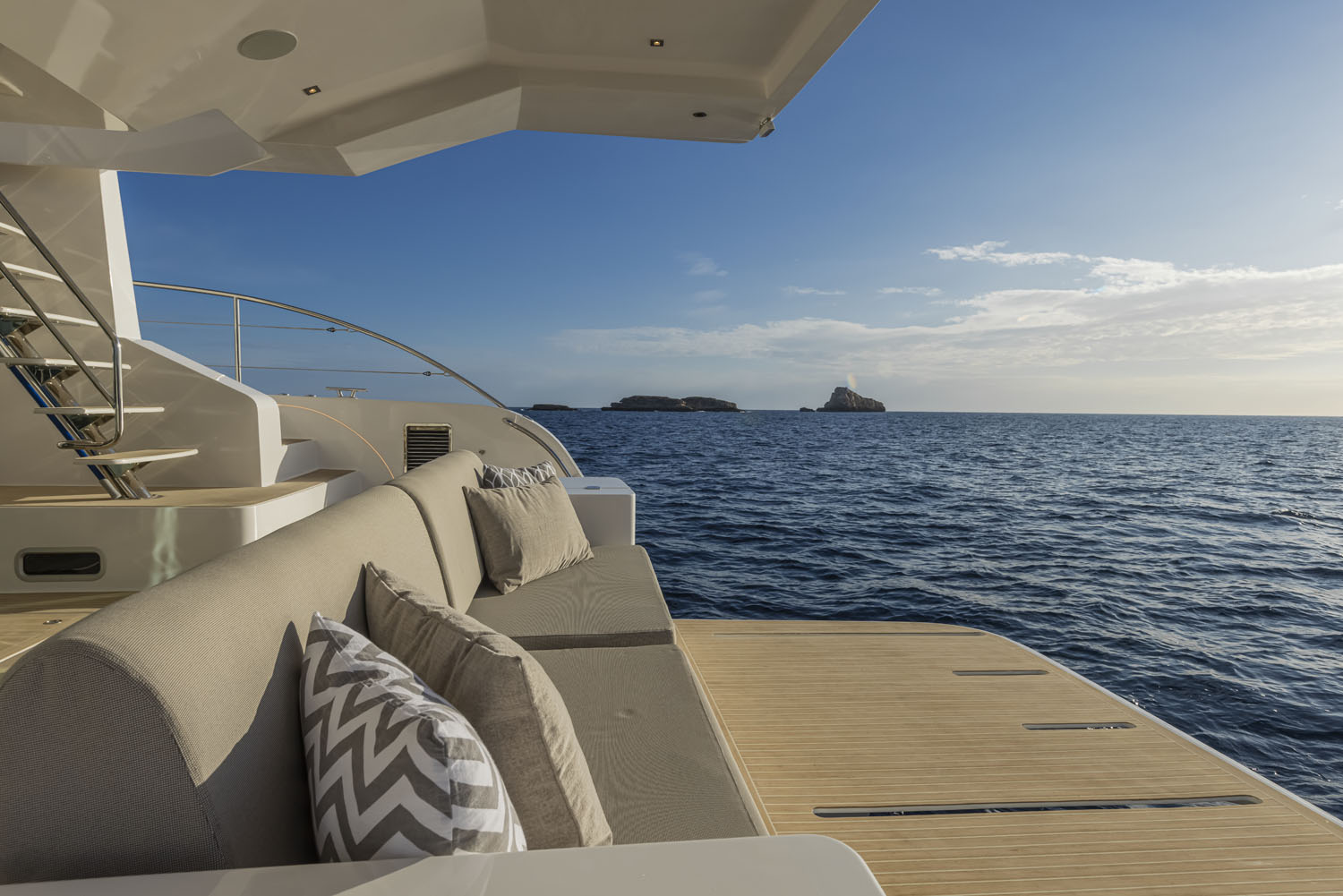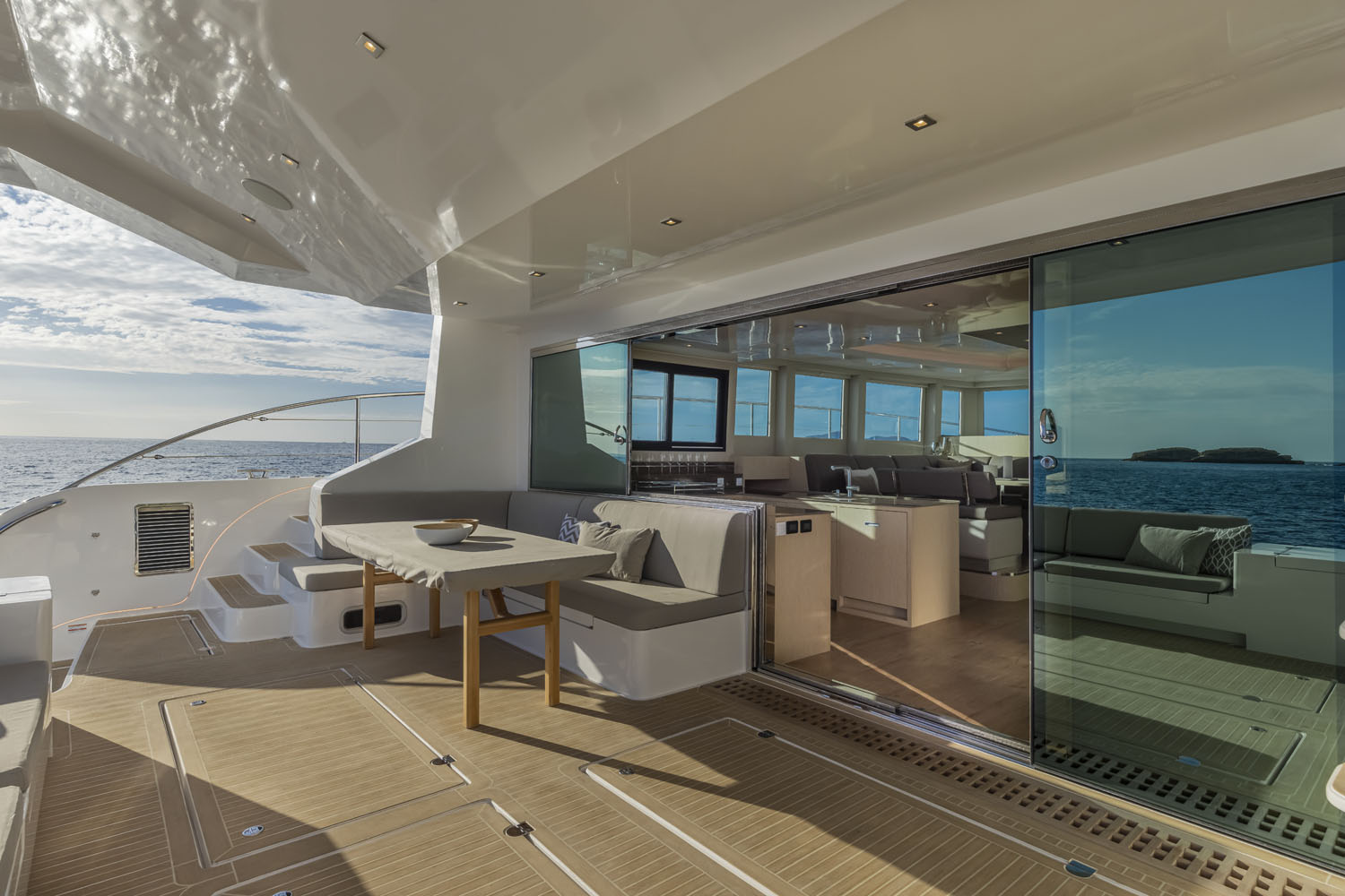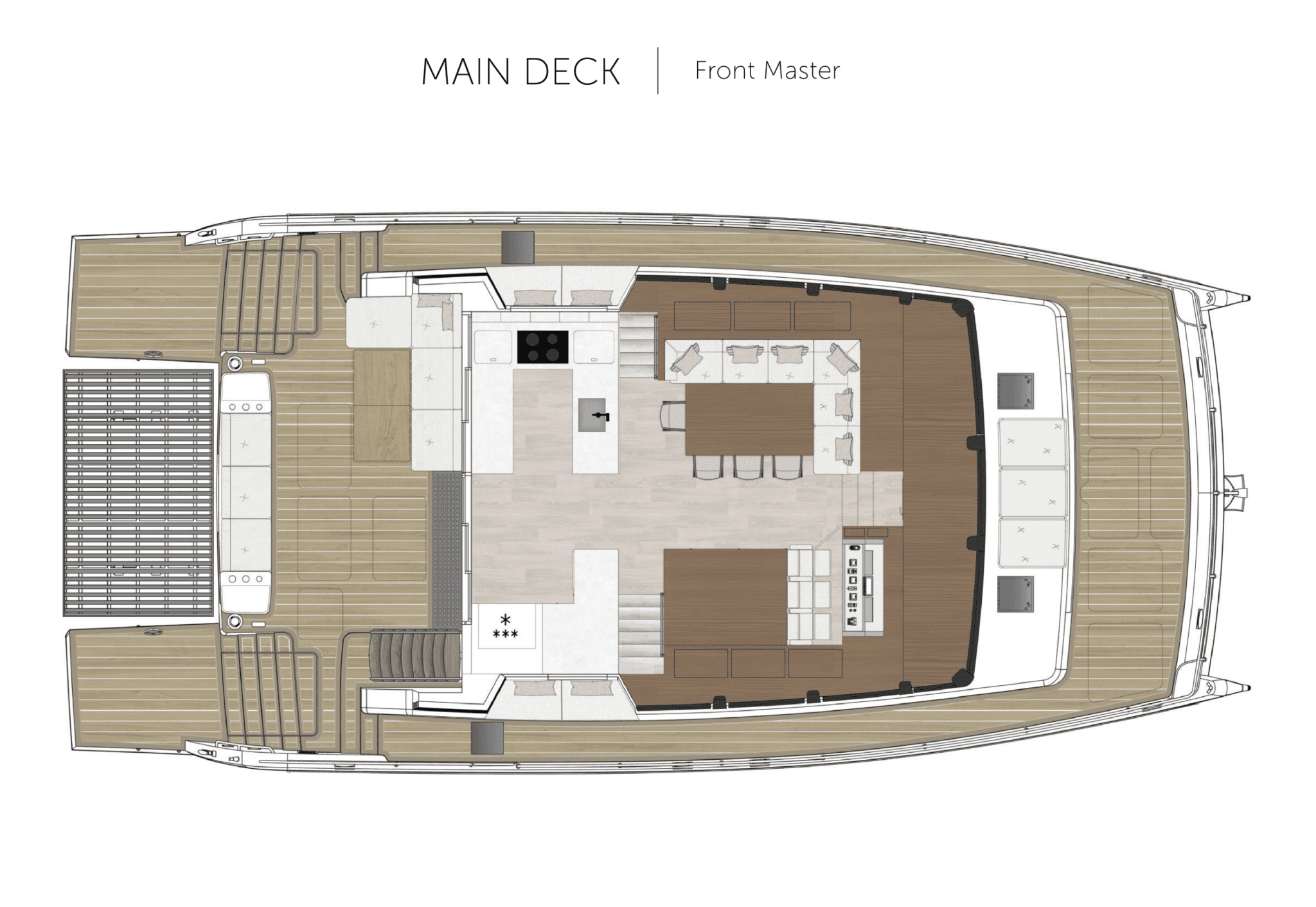 She is also available in a front exit version, which is equipped with an additional entrance in the front of the salon, allowing guests to directly step onto the foredeck.