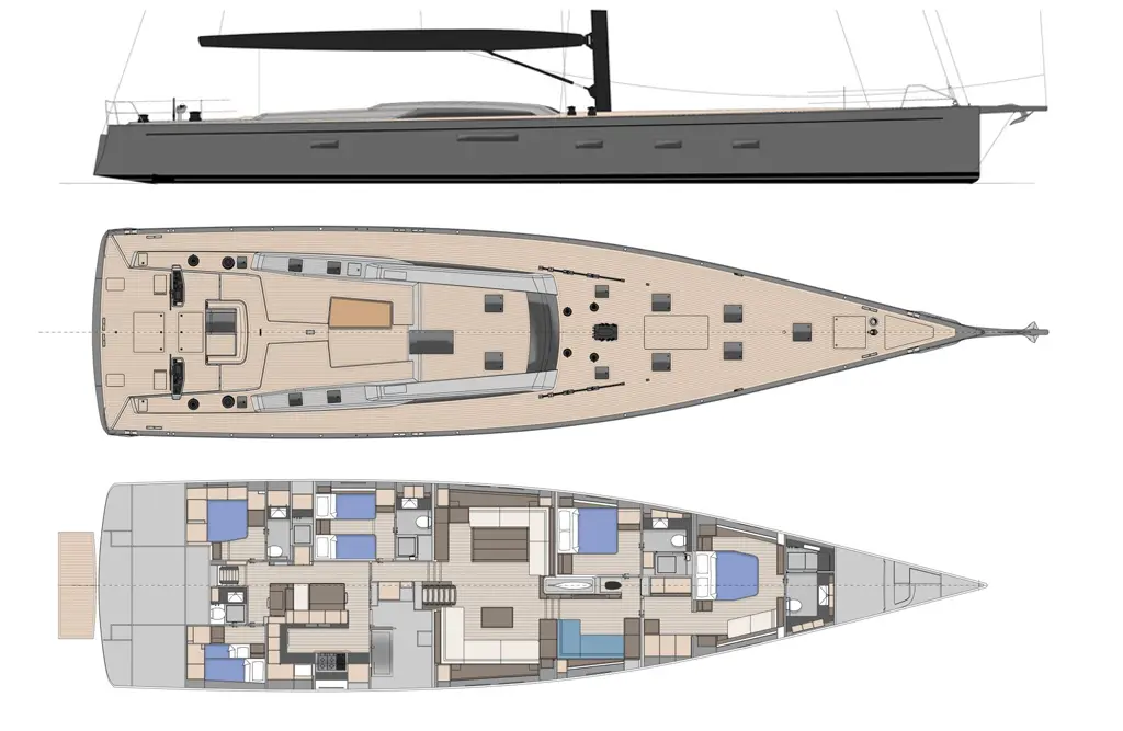 The Southern Wind 96 is one of the latest additions to the SWS family. This composite yacht’s sleek hull lines designed by Farr Yacht Design and general concept drawn by Nauta Design express the company motto: “simplicity is the essence of good design”.