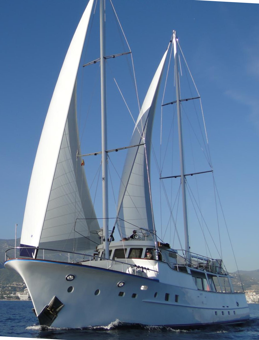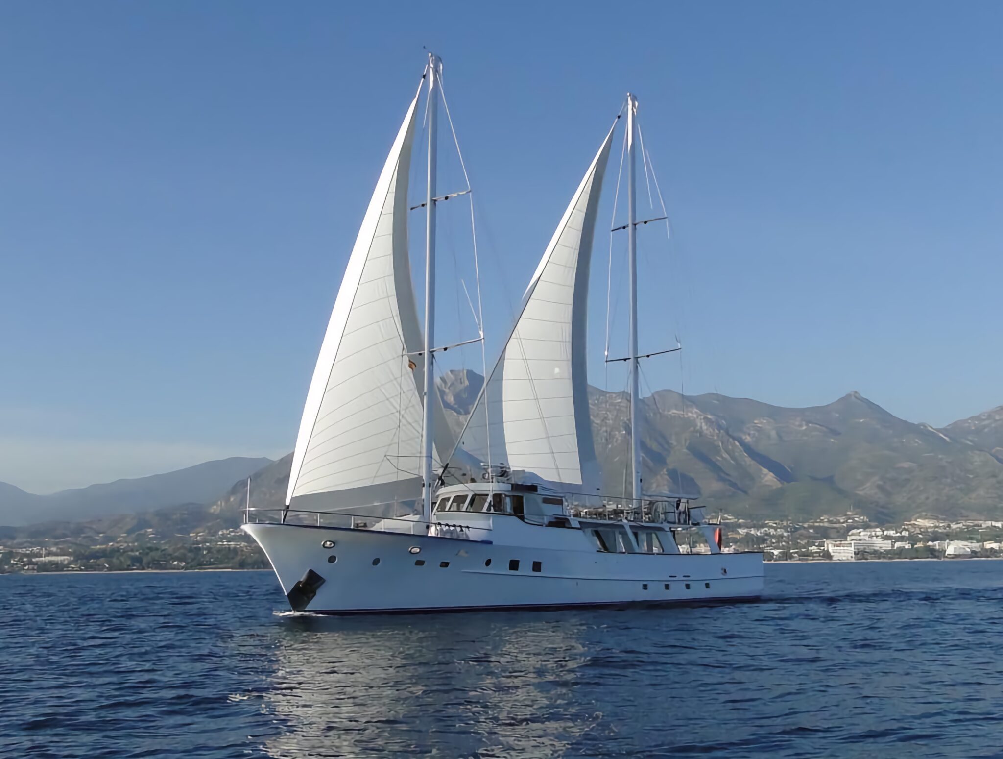 «COLUMBUS OF LYMINGTON embodies the timeless elegance of a classic gentleman yacht, designed by J.F.H. Roger. With over 30 years of cherished ownership, her second owner spared no expense in enhancing her features. This magnificent vessel now boasts a schooner rig and an upgraded auxiliary engine — a powerful Volvo 72 hp engine with sail drive — allowing for graceful sailing. Additionally, her original TWIN CATERPILLAR D343 diesel engines ensure smooth cruising at a comfortable speed of 12 knots, with a maximum speed of 14 knots. Notable improvements include a 2.5m hull extension, now measuring an impressive 26m, as well as the addition of a bulb to minimize pitching when under engine power. Remote steering controls and a luxurious jacuzzi on the fore deck are just a few more of the remarkable upgrades that make her truly exceptional.»